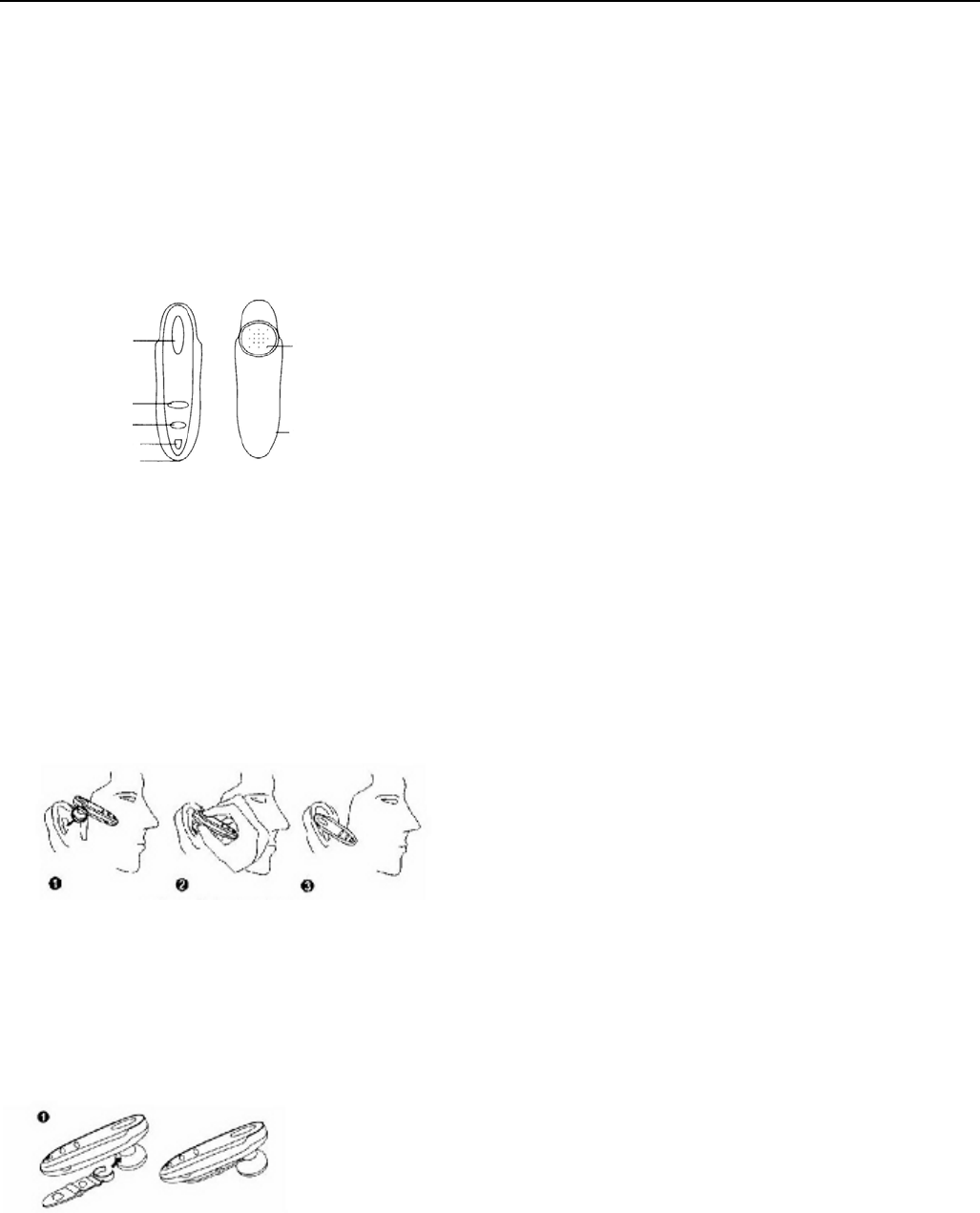 1. Multi-Functions Button :Switches the headset on/off, answers/ends a call, and is used for voice dialing