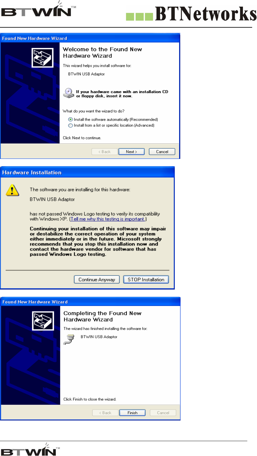 BTNetworks Co., Ltd. USB BLUETOOTH DONGLE users manual