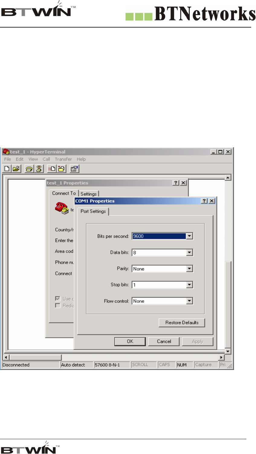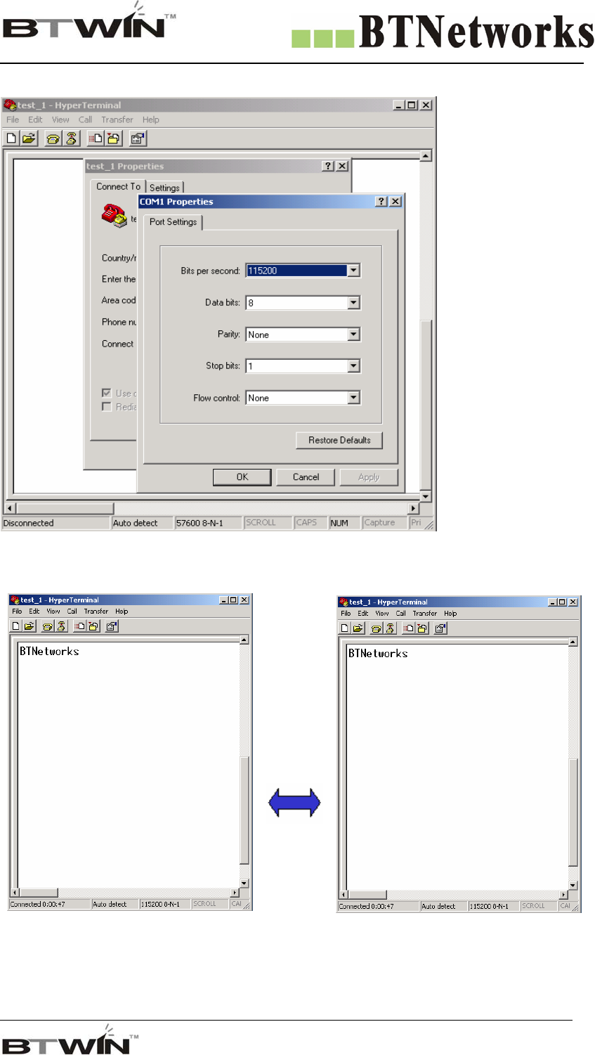 [2] Run the Hyperterminal program of the windows. Refter to “PC Configuration Mode”.