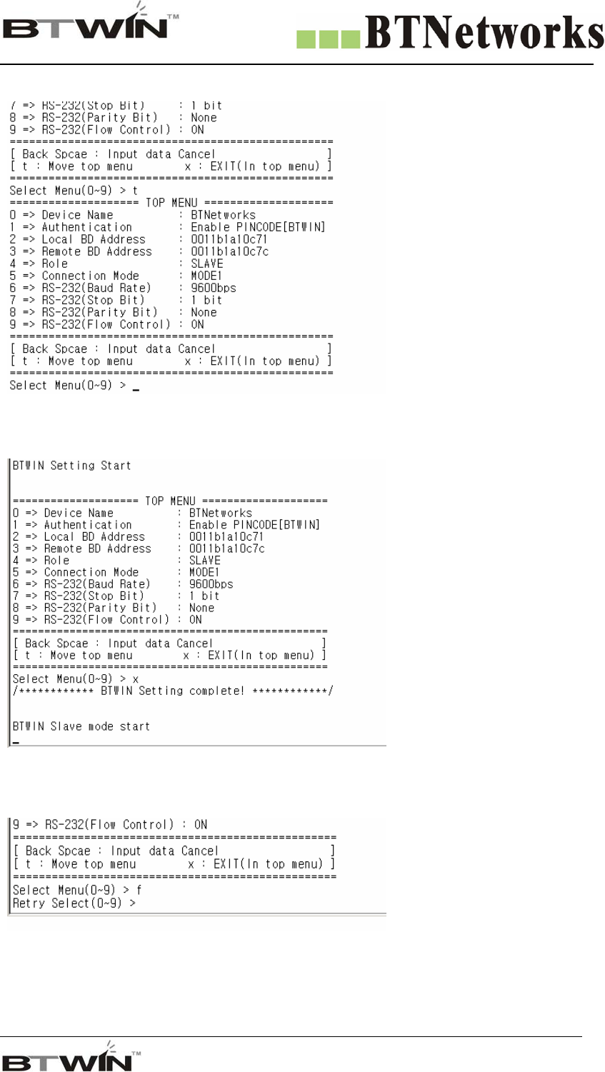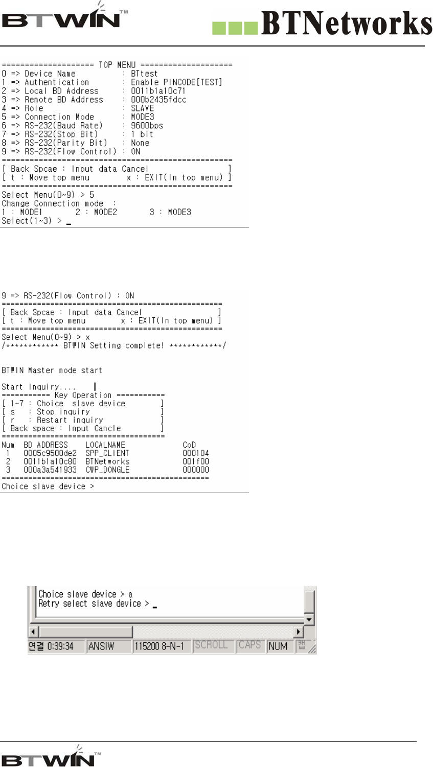 - If connection is fail, “The slave device is not connectable!!” message will be displayed.