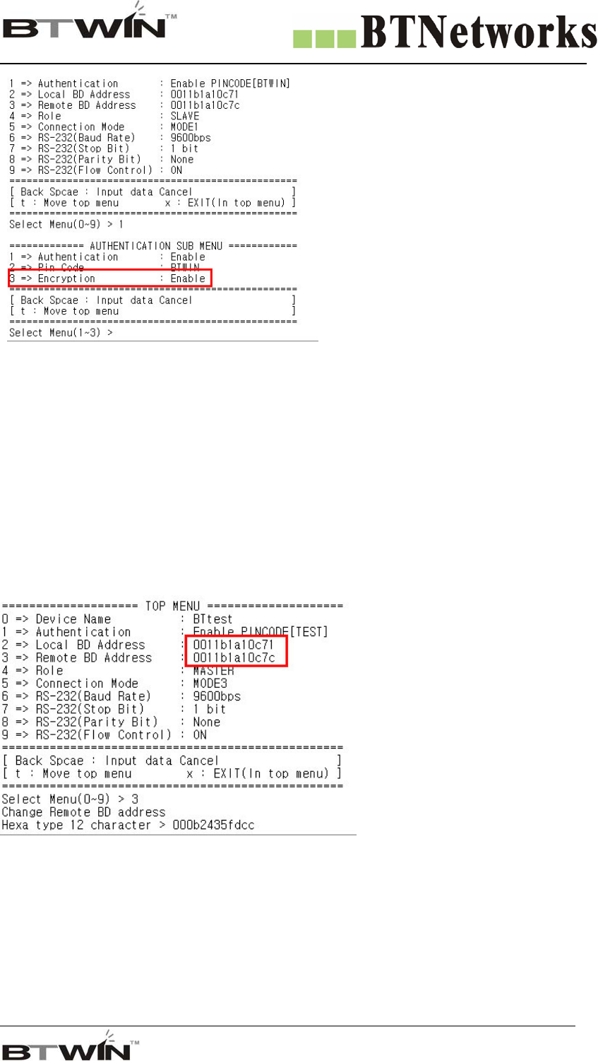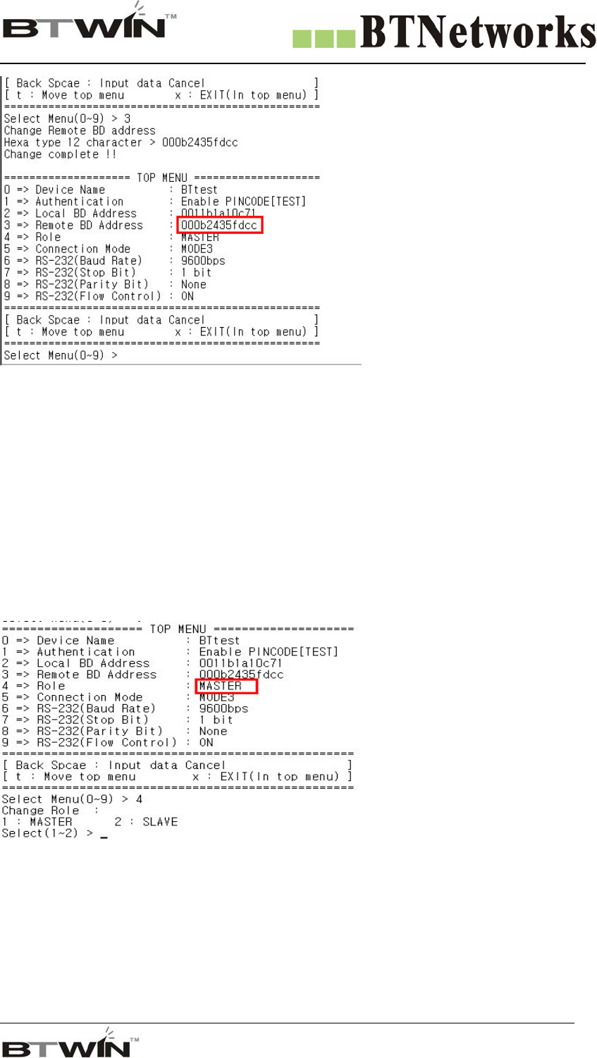 - The latest paired bluetooth device address is memorized to the Remote BD Address.