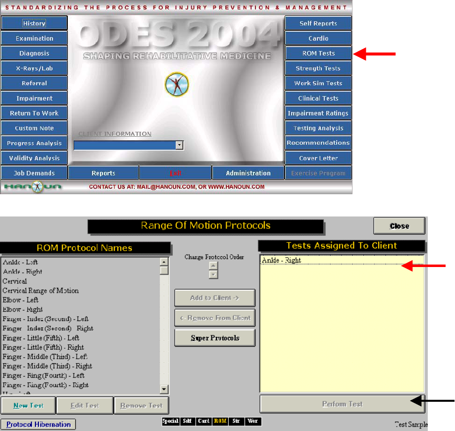 final reading. ODES will automatically document the final true range. Return the client's shoulder to the