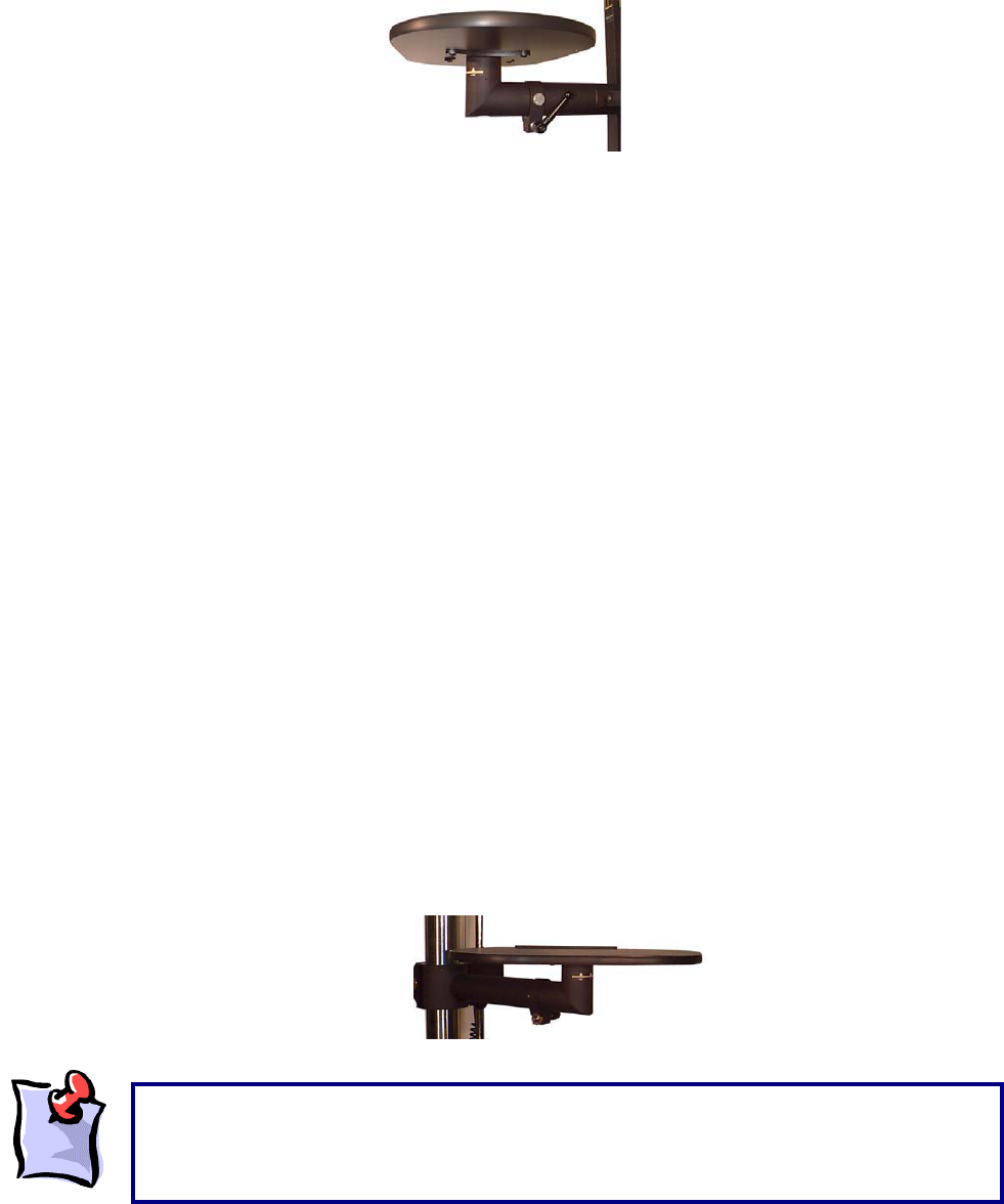 BE AWARE that the shelf height reading refers to the arm with the shelf / accessory attached and in the