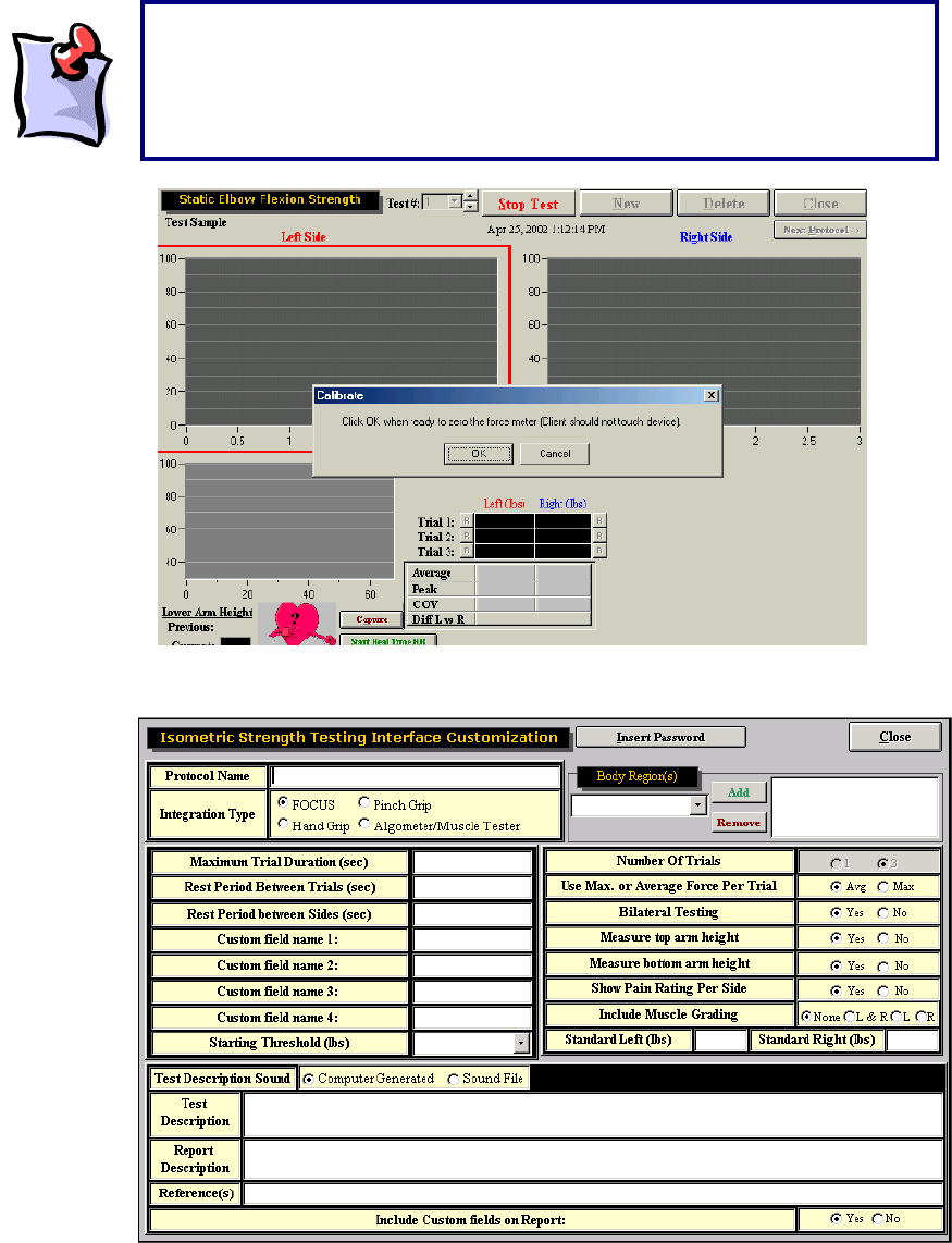 prior to commencing a test. This will re-zero the load cell to include the accessory. Once you click OK,