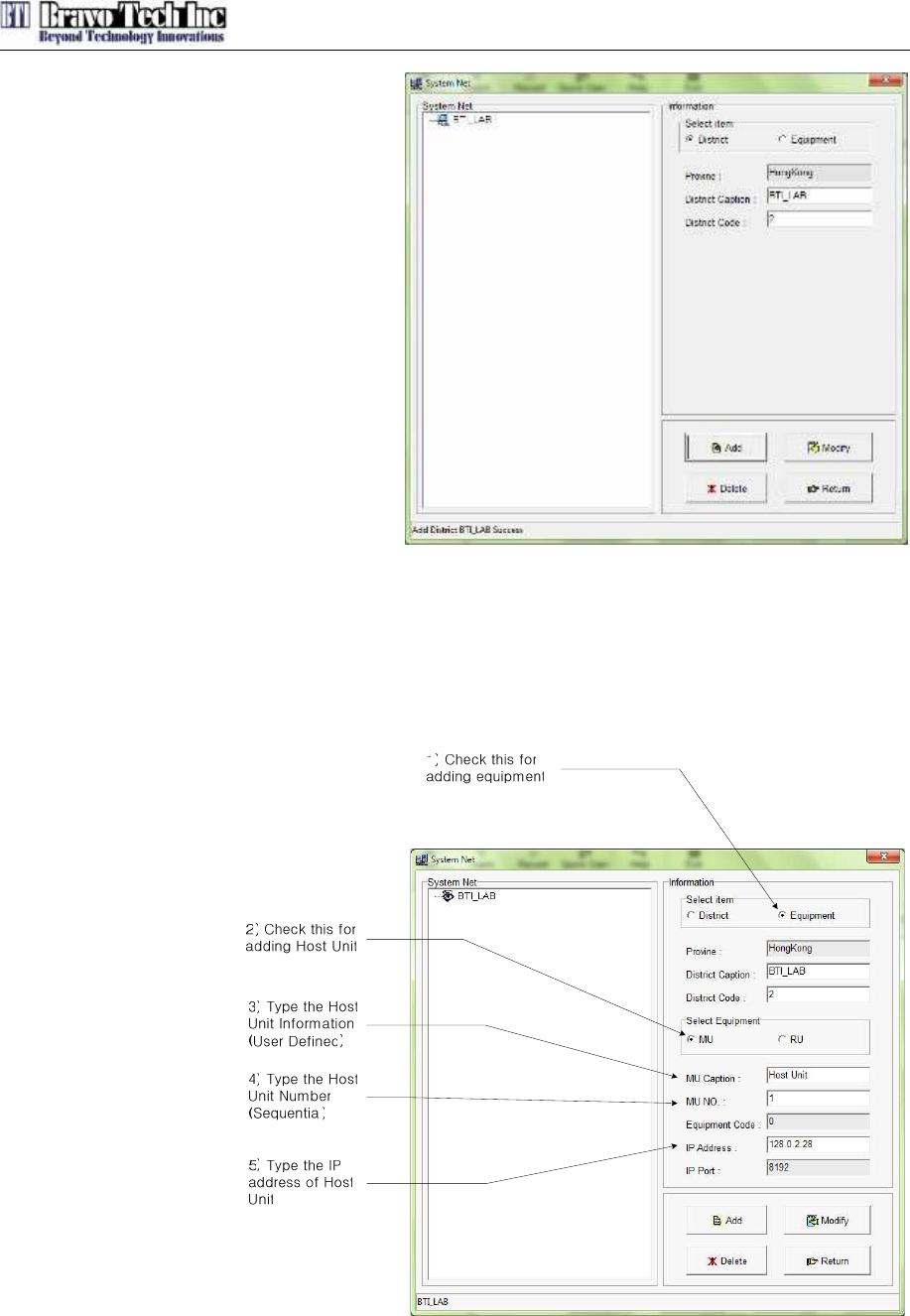 7. After adding Host Unit, Remote units are required to add in the system configuration with same