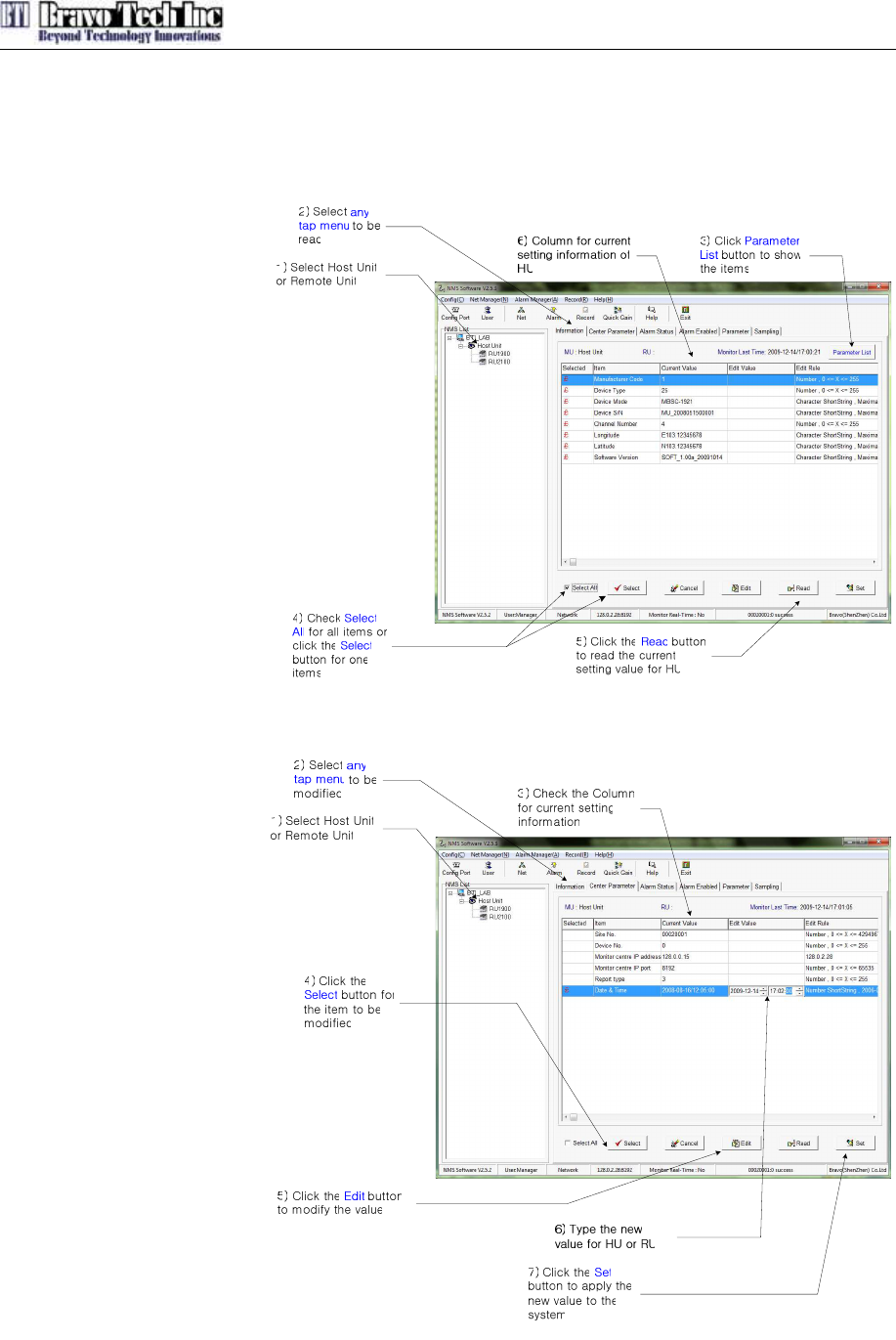 parameters for Host Units and Remote Units. The Figure 3-12 and 3-13 shows how to read the