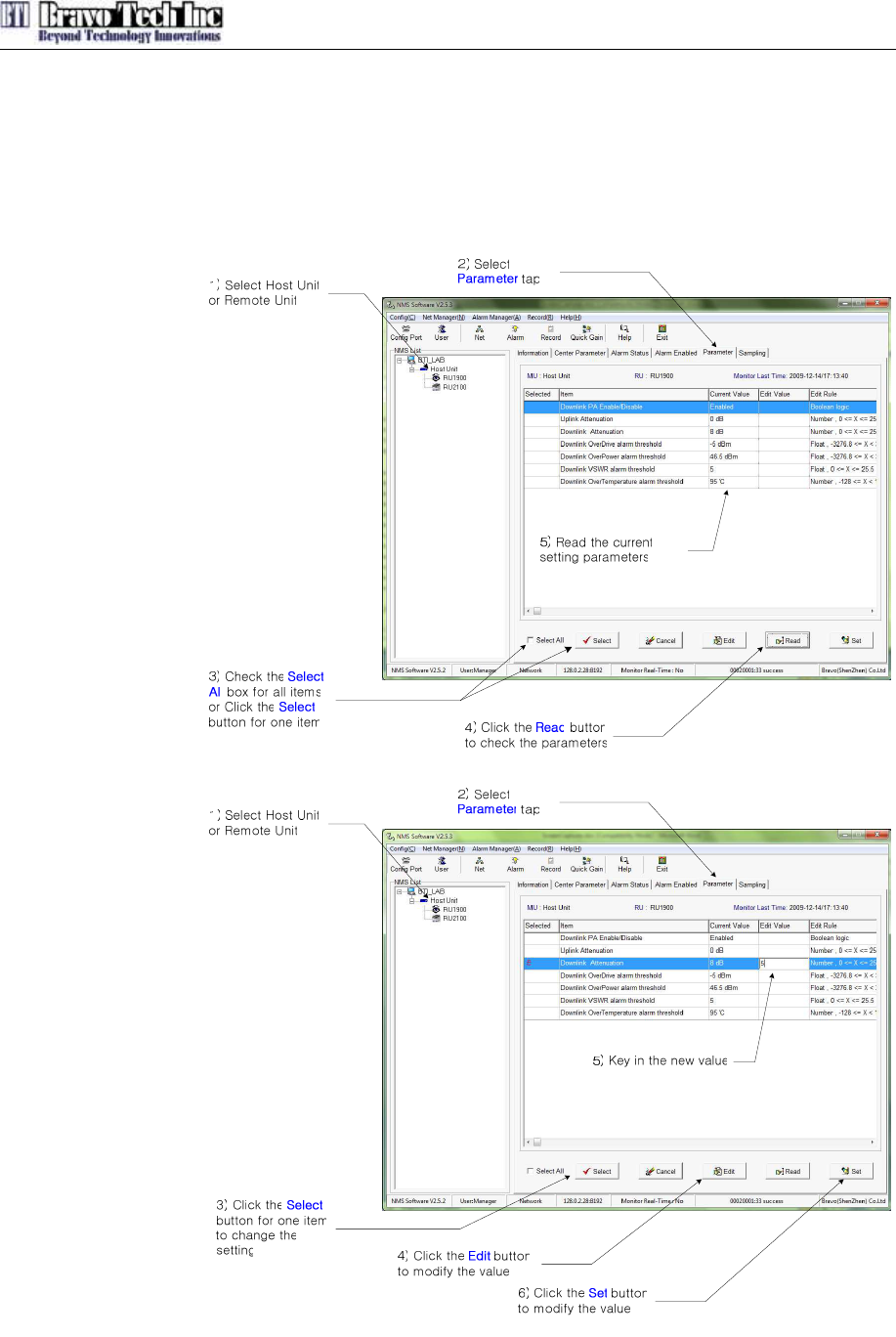 current setting parameters and edit the parameters for Host Unit. Remote unit has the same