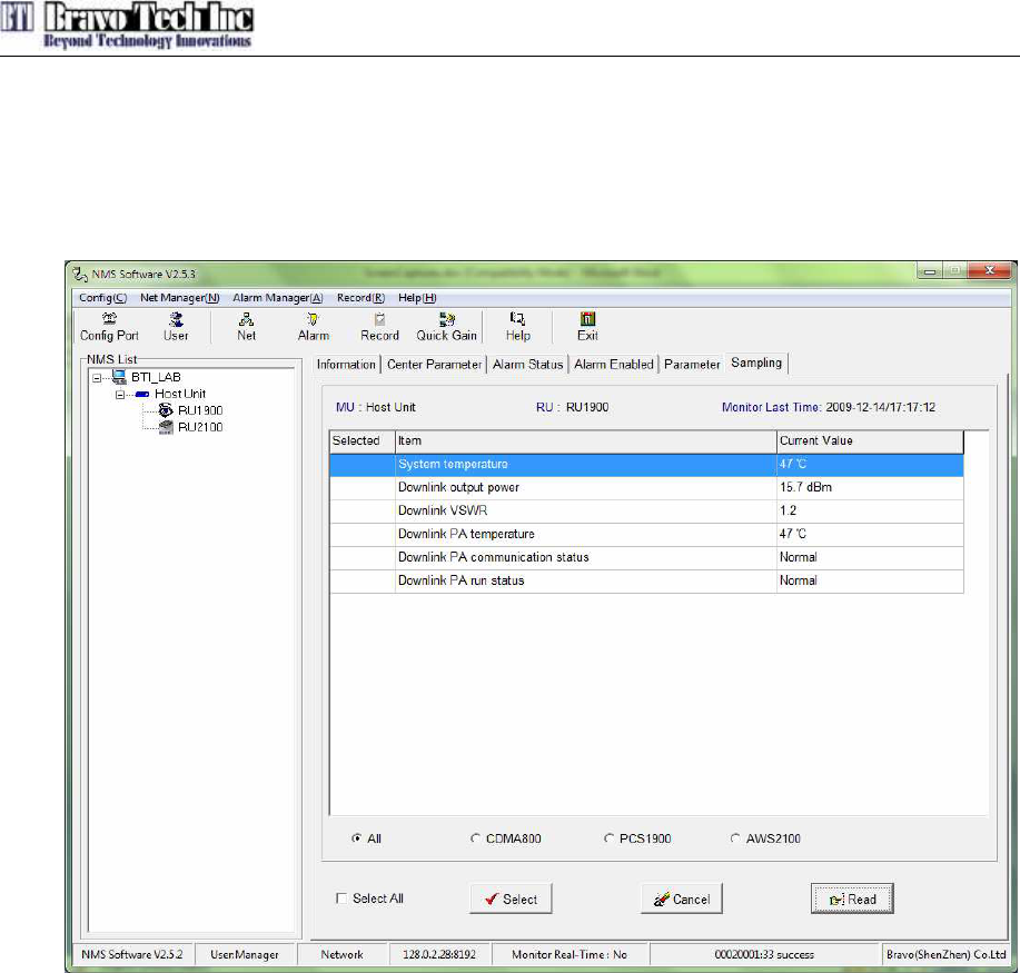 system performance like downlink output power, temperature of unit and so on. The Figure 3-17