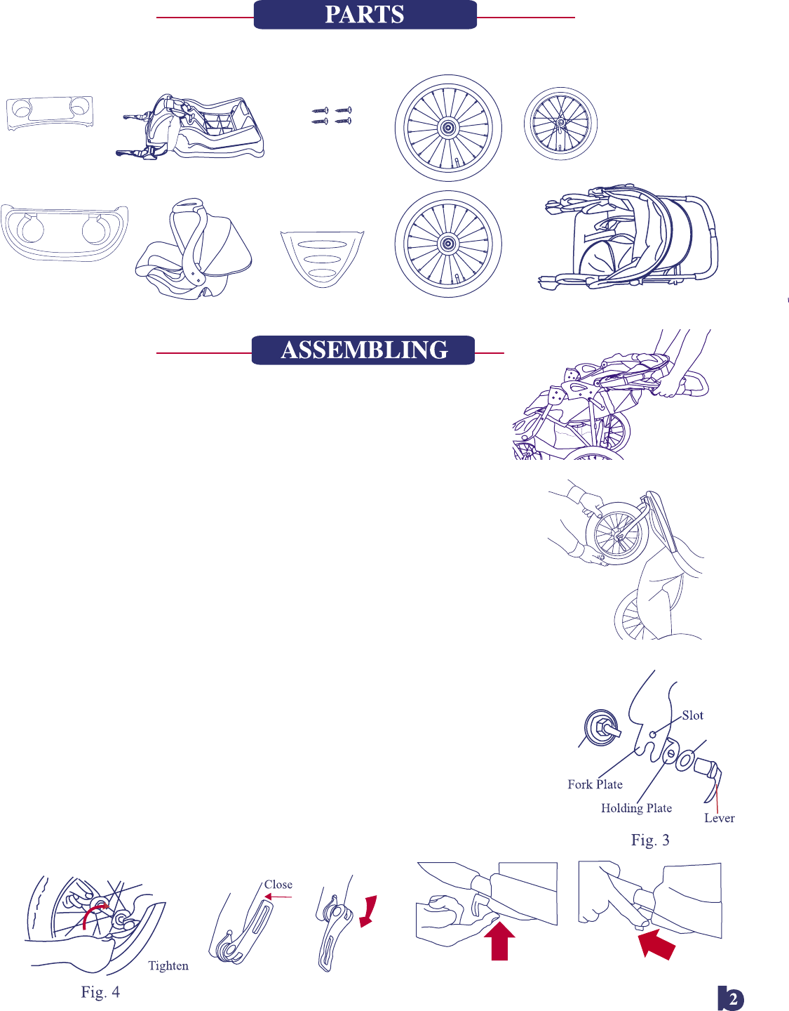 3. Slide the front wheel onto the front forks. See figure 2. The quick