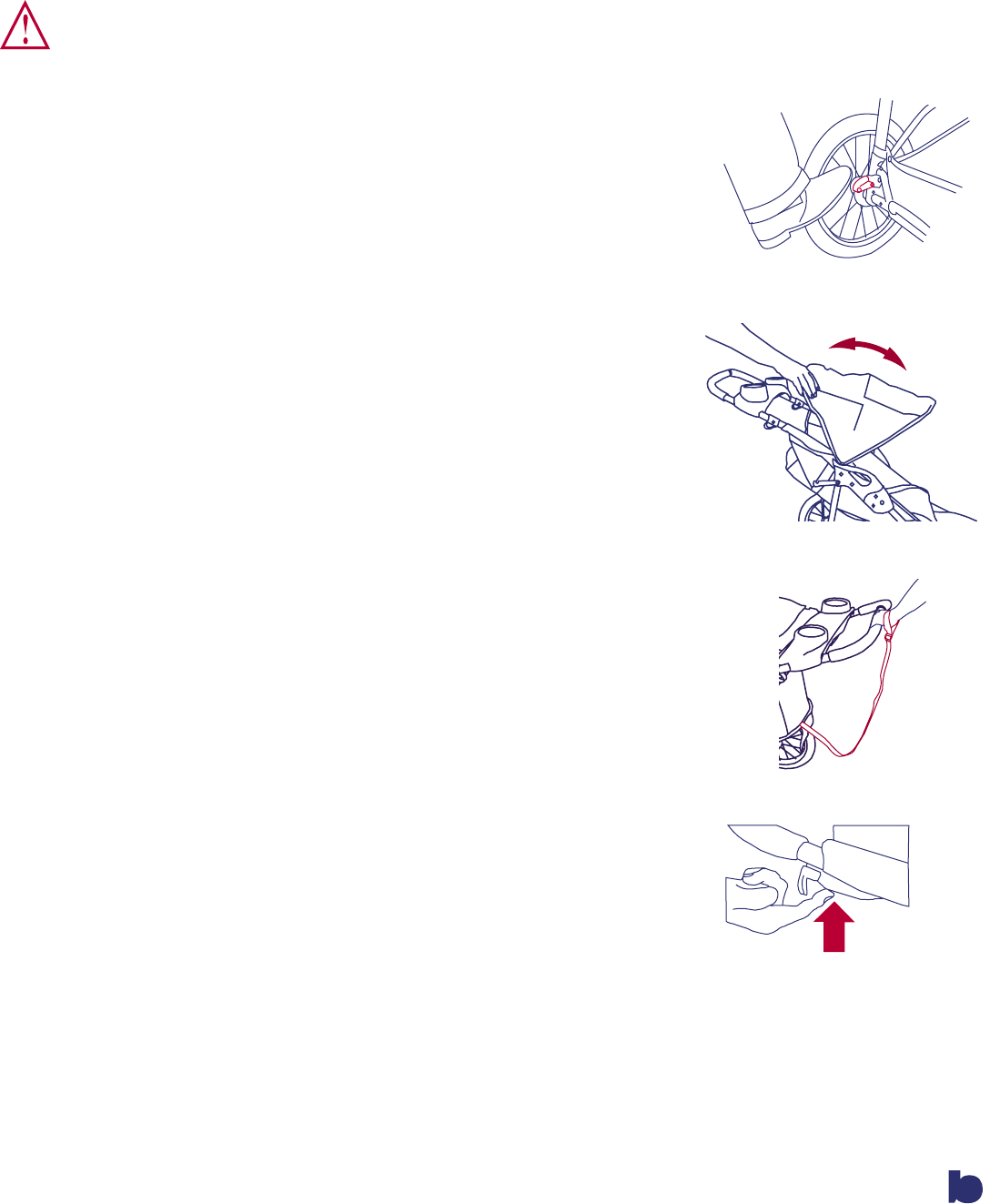 wheel‘s brake cluster. See figure 22. Check that the stroller will not move