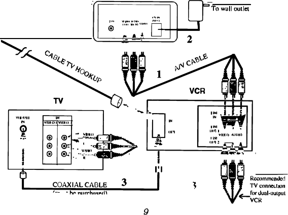 nearby TV, connect coaxial cable from the single OUT port on your VCR to the