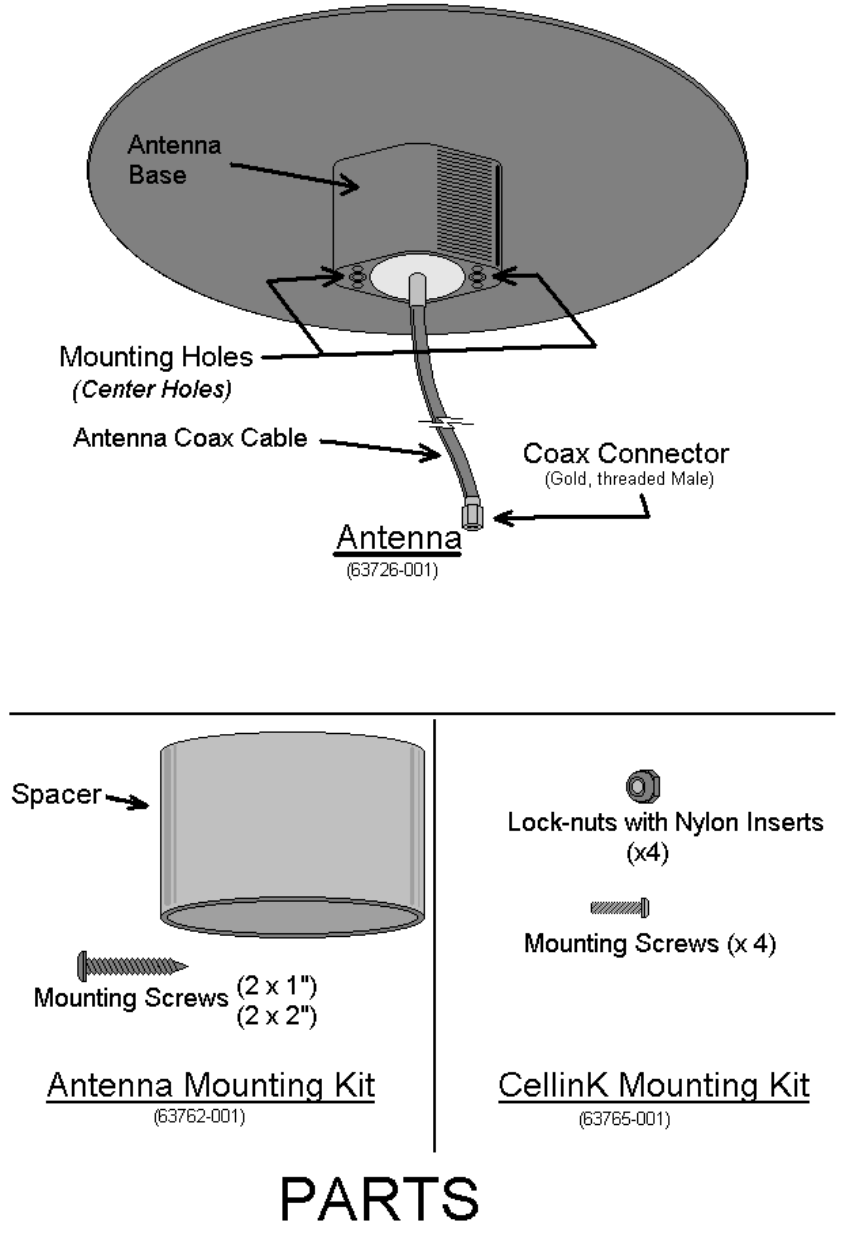 Antenna Base. Ensure that Antenna Mounting Screws are fed into the CENTER