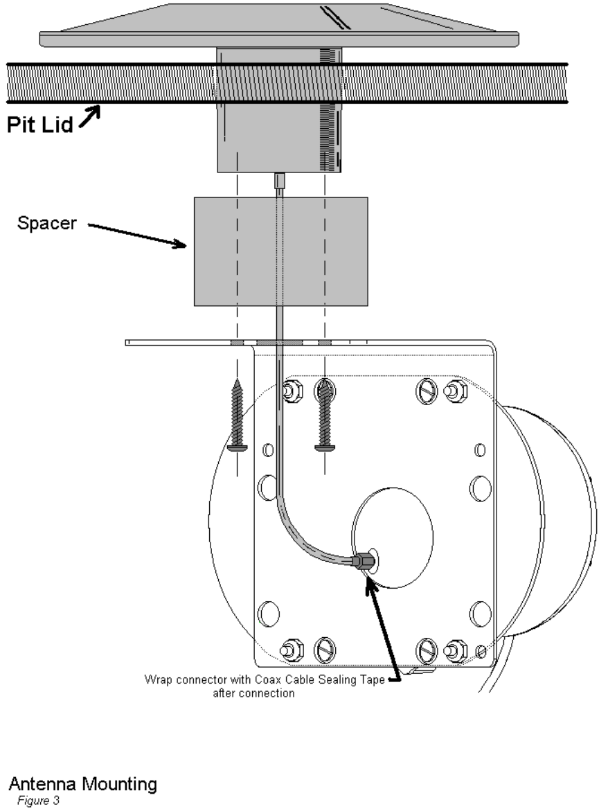 2. Insert Antenna Coax Cable and Antenna Base through pre-drilled hole in Pit Lid.