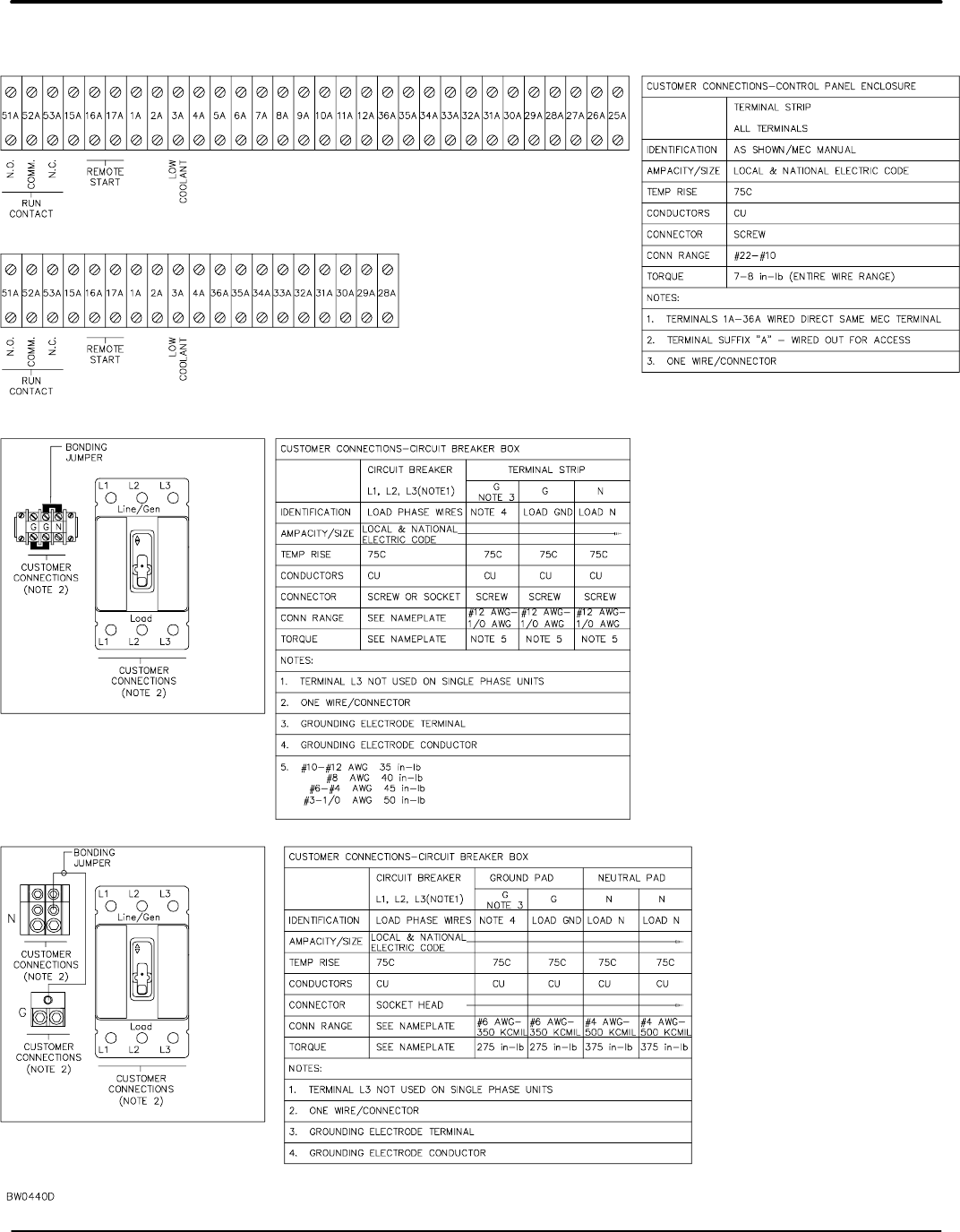 Figure B‐24 Three Phase Connection Diagram (Wire 1/0 and Smaller w/Breaker)