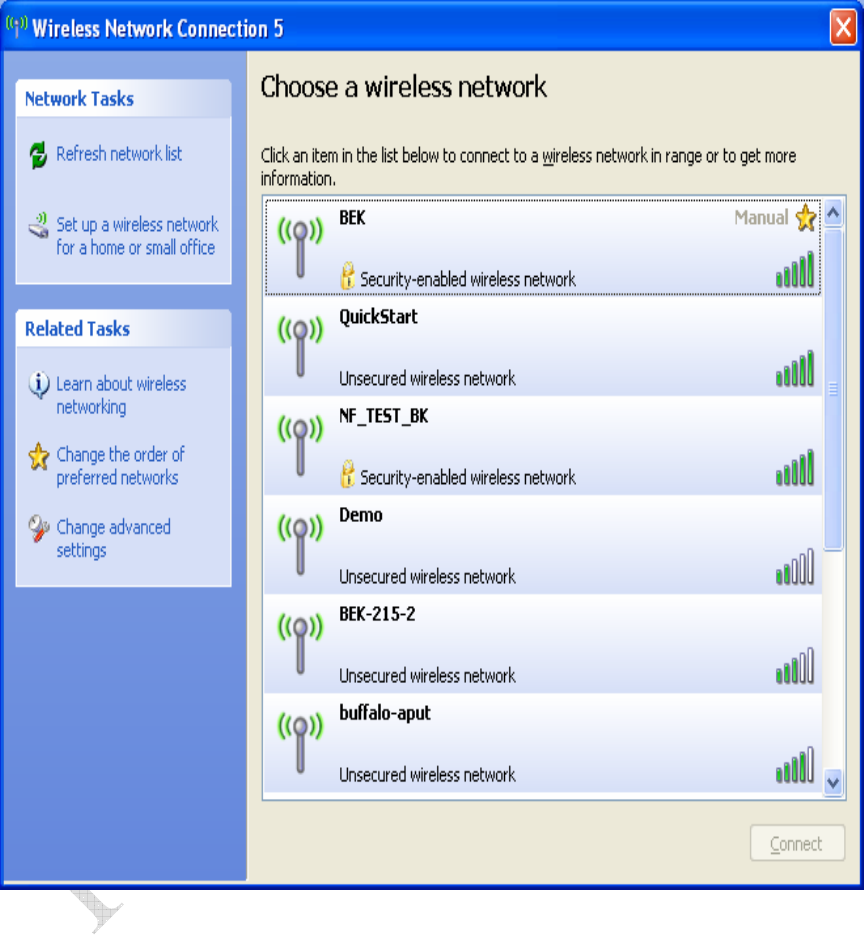 Select “View Available Wireless Networks” under “Network Tasks” and you’ll see a