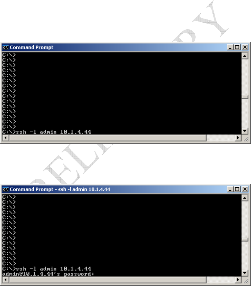 and type “ssh –l admin {IP address}”. See the example window below.