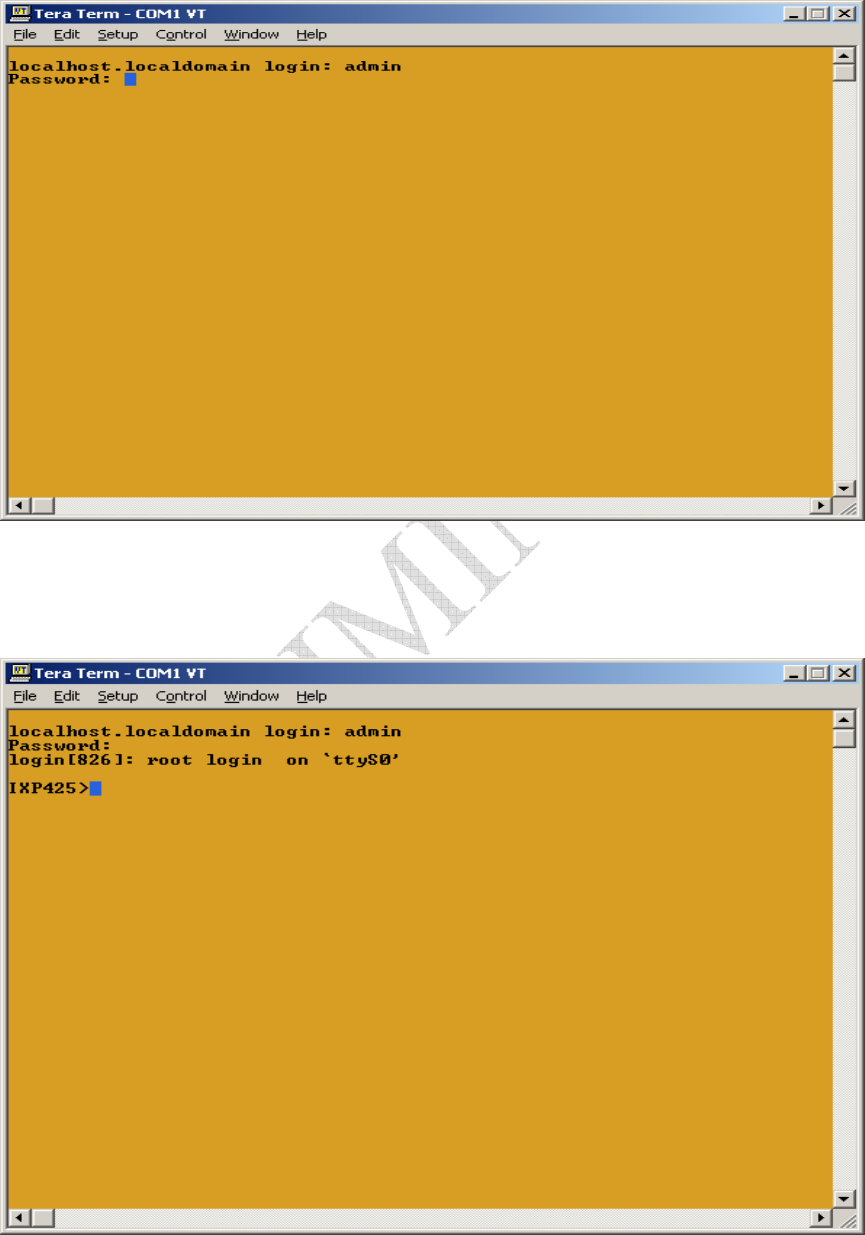 Enter the AirMaestro 3100AG factory default password and the IXP425 prompt appears.