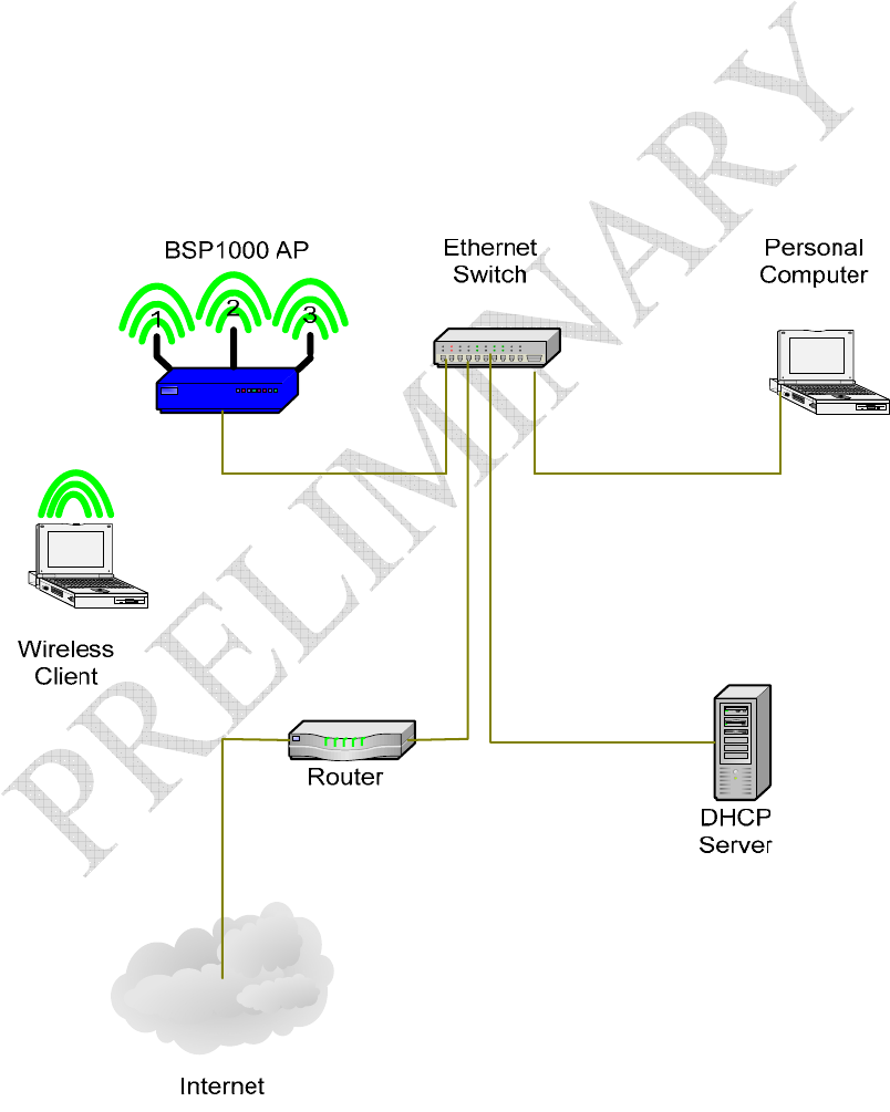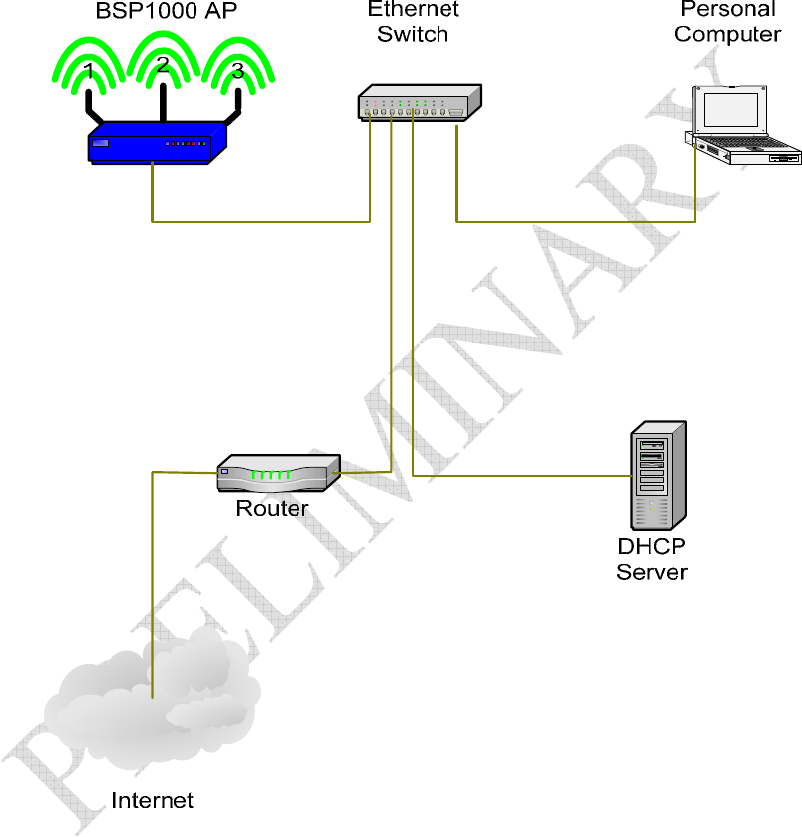 DHCP server, an Ethernet switch (or hub) and the AirMaestro 3100AG in one of the