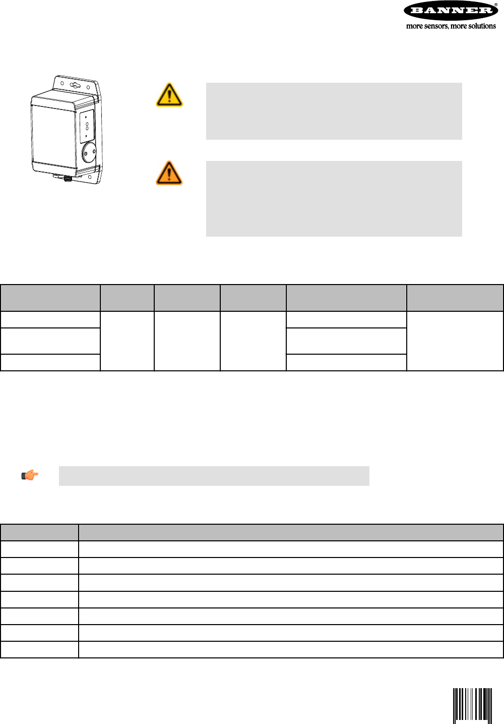 2 www.bannerengineering.com - tel: 763-544-3164 P/N 157494 Rev. C