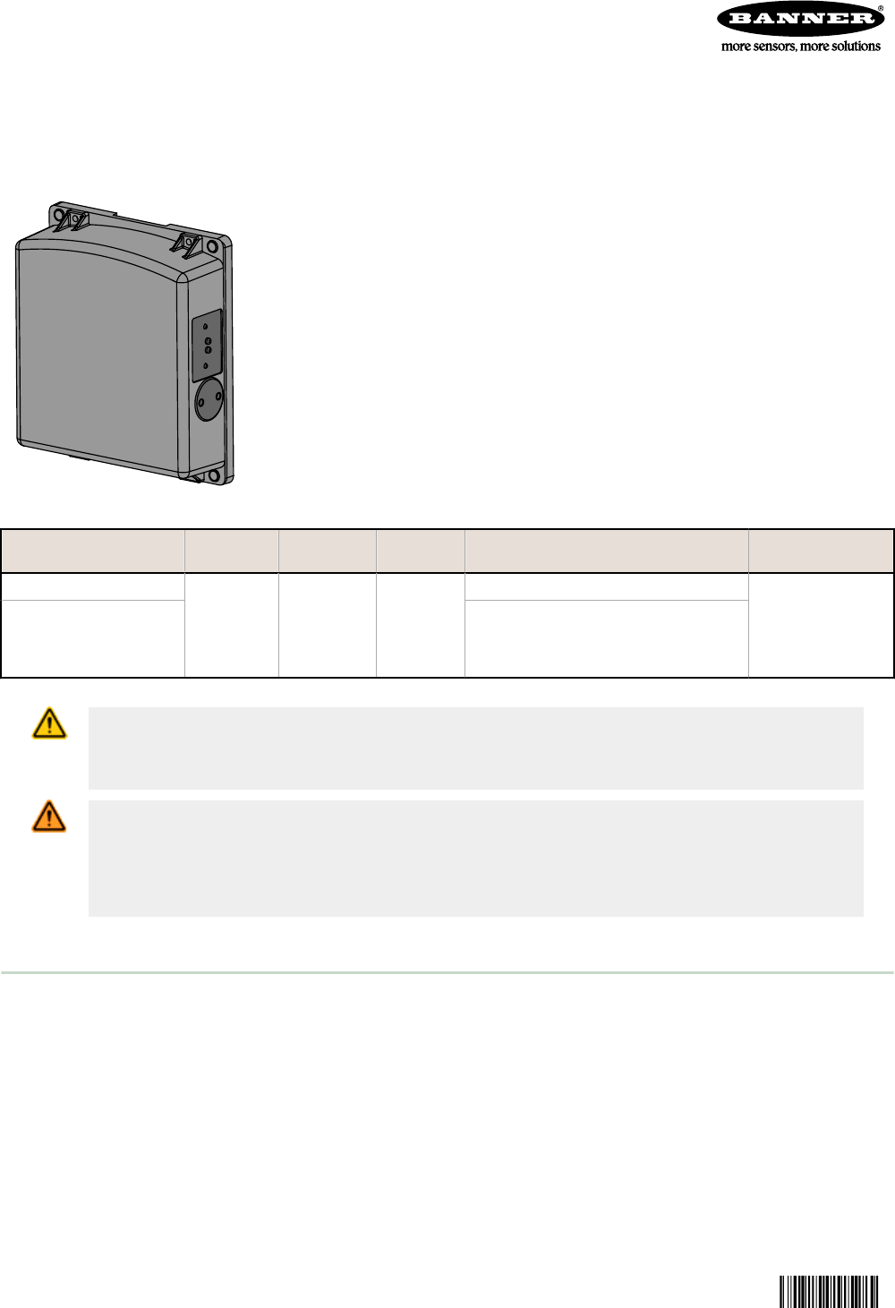 2 www.bannerengineering.com - Tel: +1-763-544-3164 P/N 184564 Rev. A