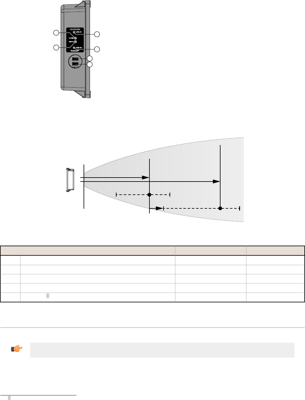1Typical dead zone: 0.4 m (1.3 ft) for moving and 1.0 m (3.3 ft) for stationary targets, but varies with target reflectivity.