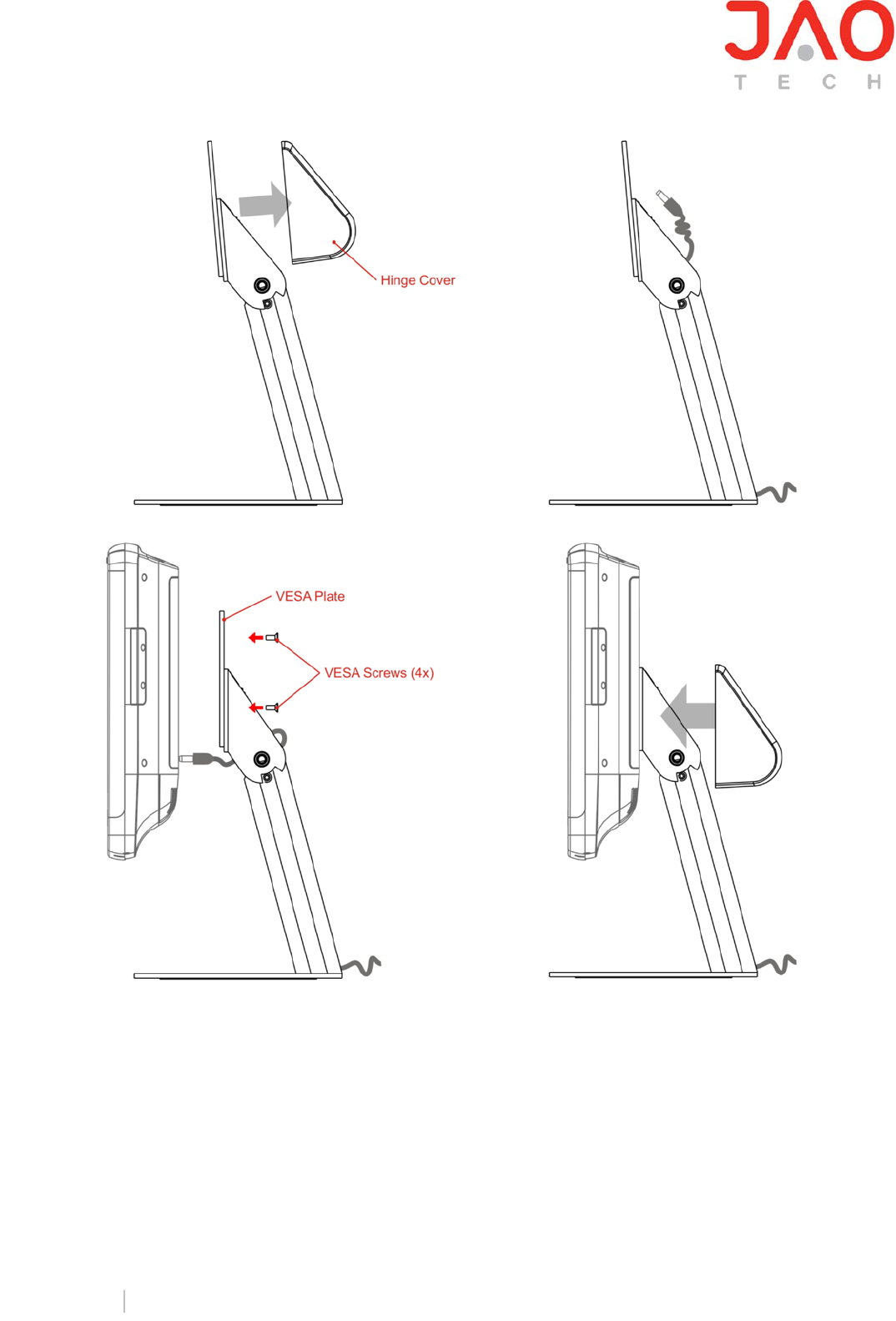 5. Fix the hinge cover to Stand Arm with the 2 M3 screws.