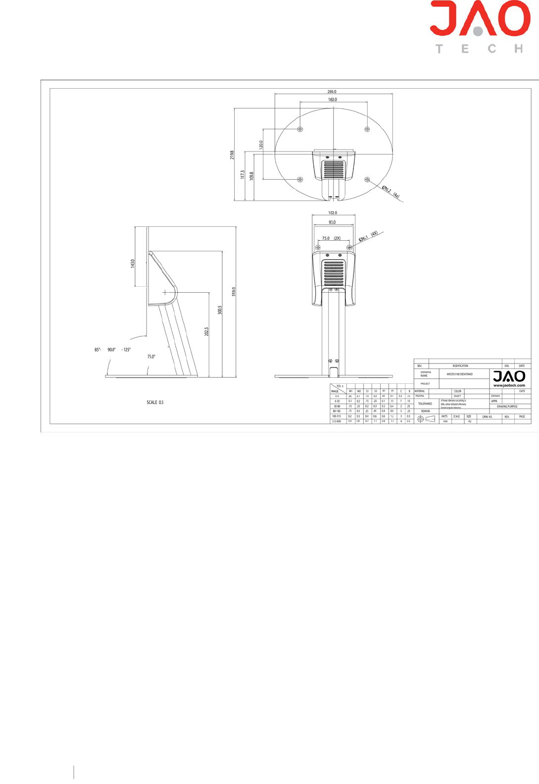 1. The Acros 5100 Desk Stand is especially designed to support and position the JAOtech