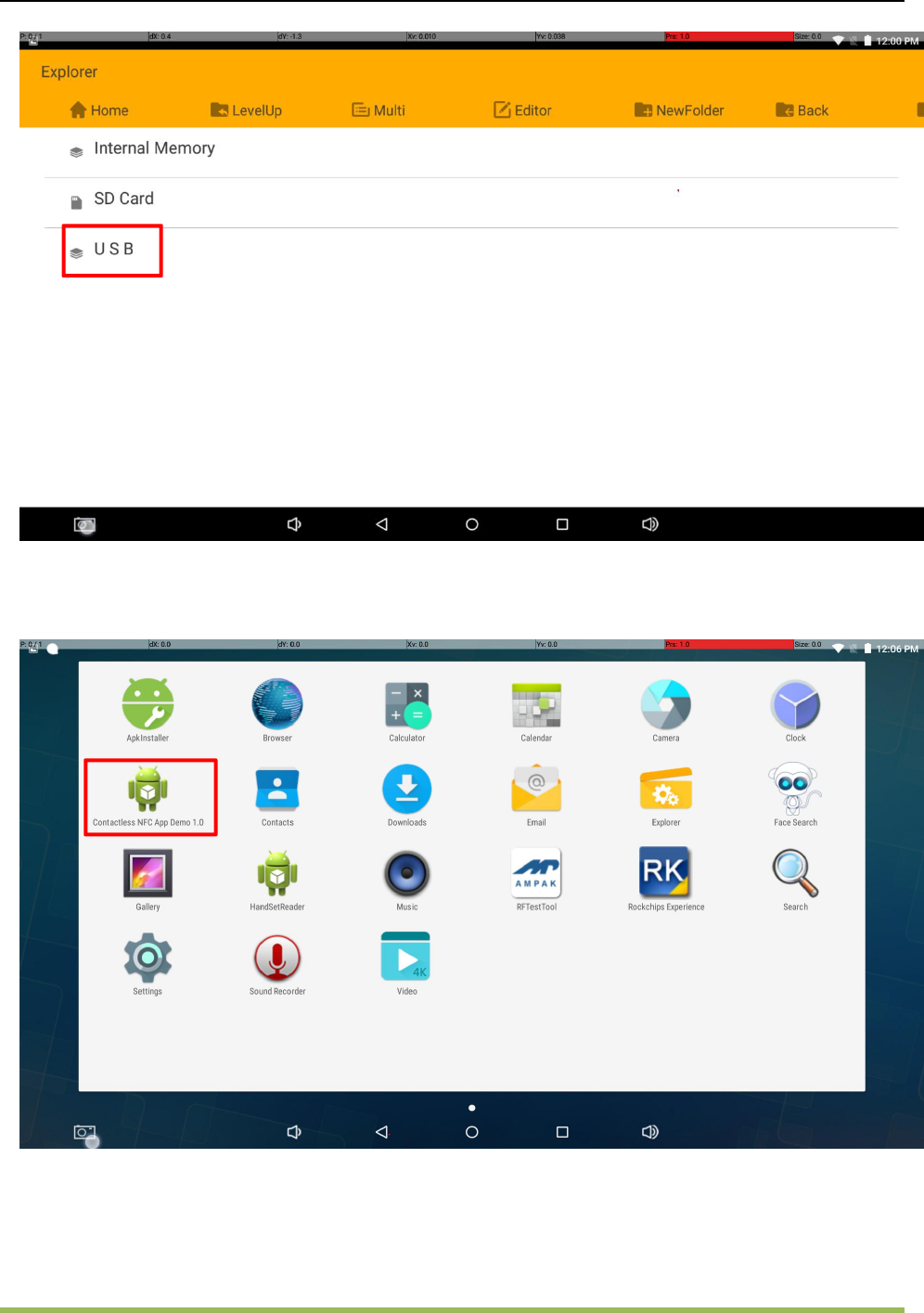 At this time, click "Explorer" icon, you will see a folder "USB" which is USB Flash Disk. click "USB" to read and write data
