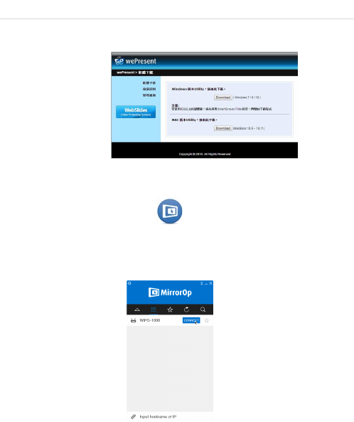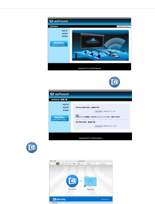 點選桌面 MirrorOp 圖示 來執行軟體,或直接從 wePresent 隨