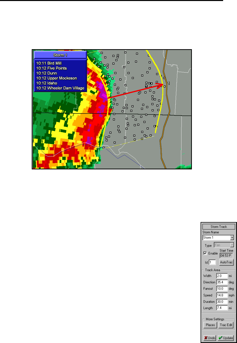 arrow), which visually depict various characteristics of the storm. By right clicking on the