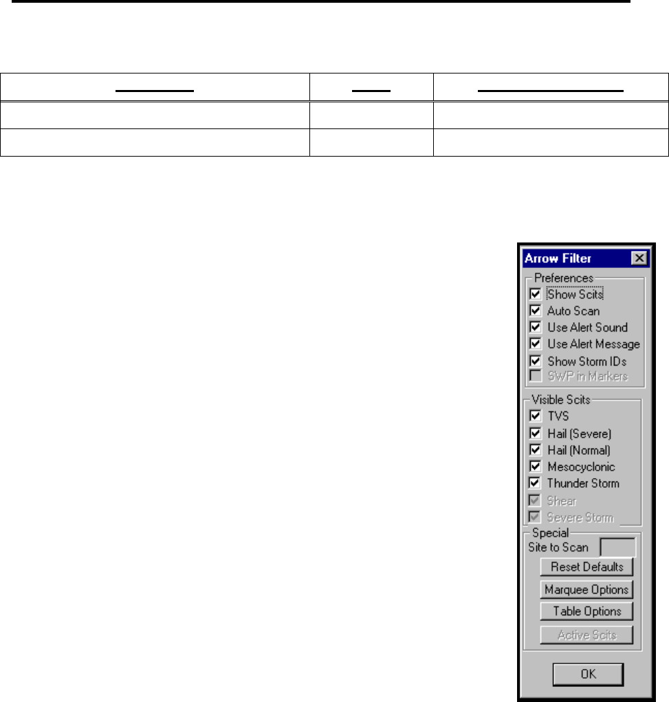 arrows: Enables the system to display storm SCITs (an identification box and an associated