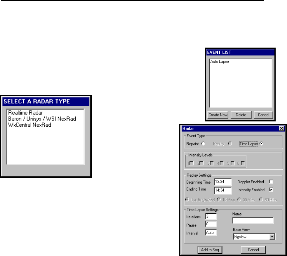 and snow, as well was their respective rates. The result is a radar display where the first five