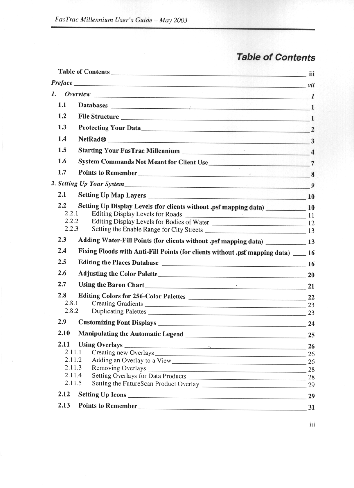 system operation. Attachment S3 consists of the table of contents for each of these manuals. If