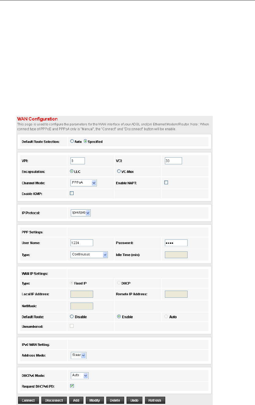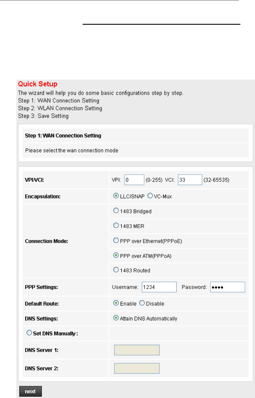 WAN Connection Setting - PPPoA DSL