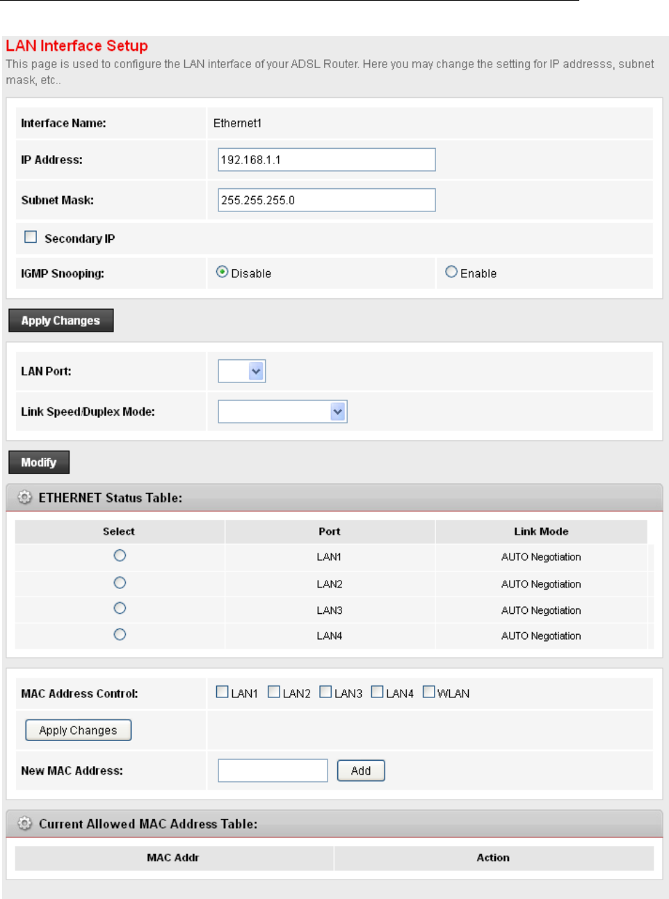 LAN interface (192.168.1.1).