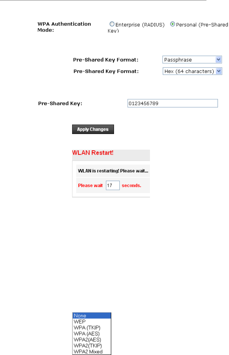 WPA/WPA2/WPA2 Mixed + Enterprise