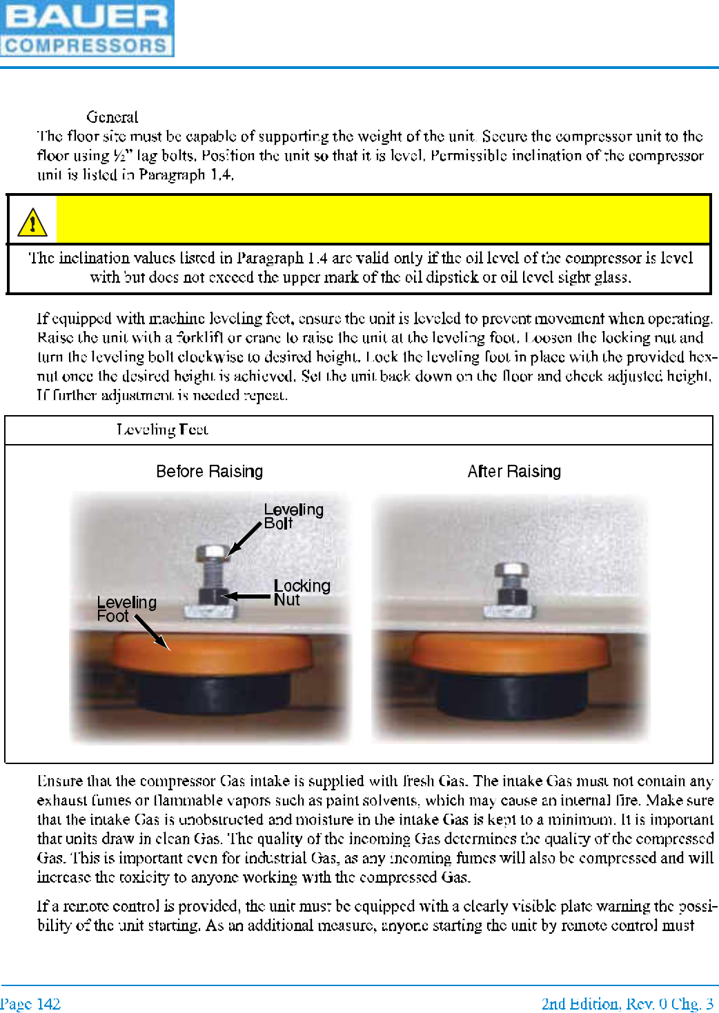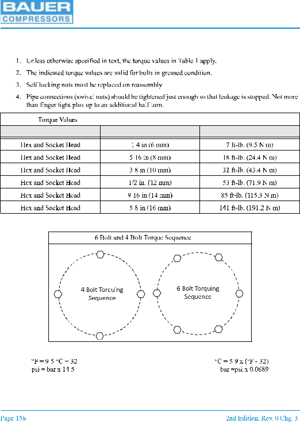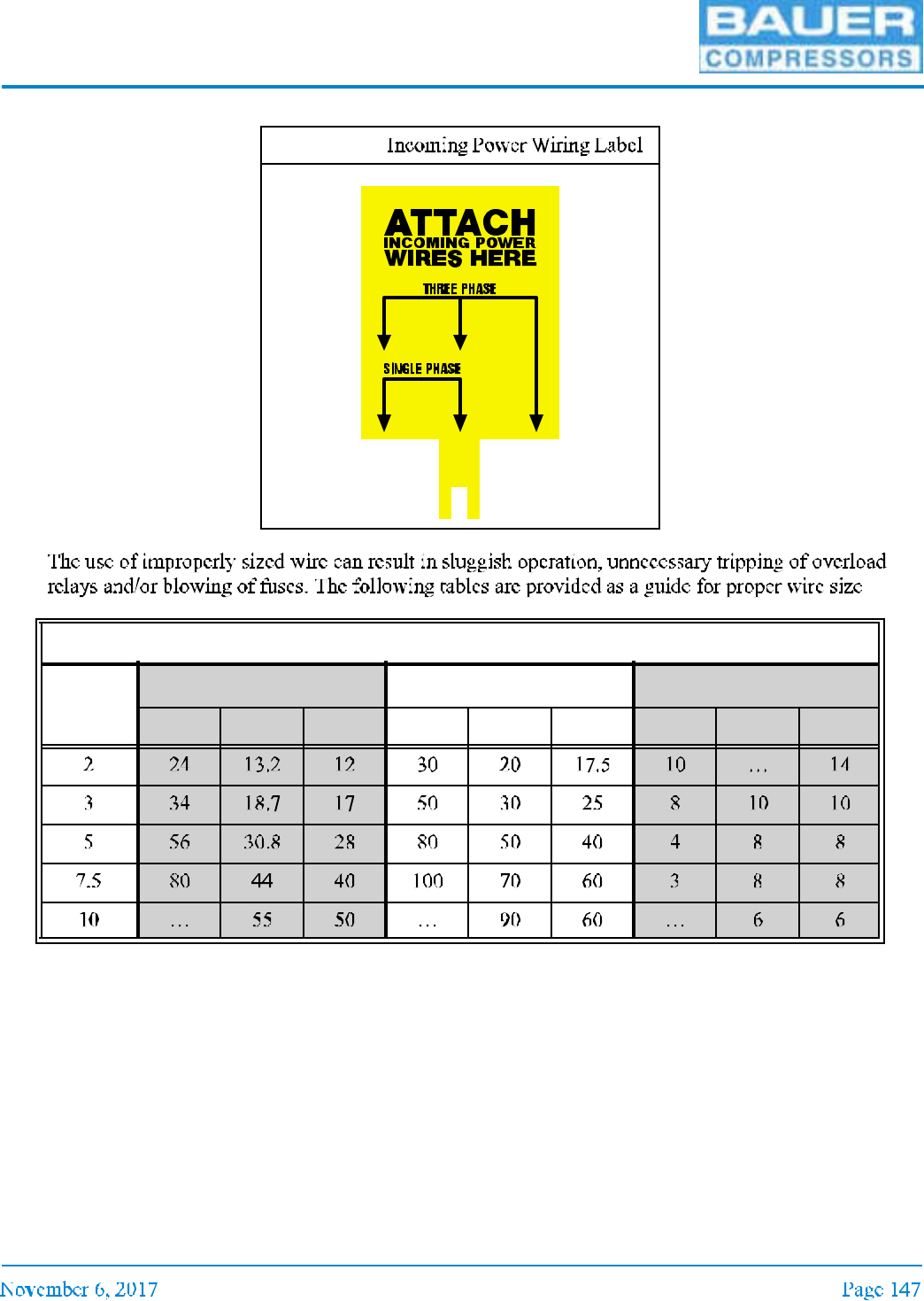 a. The intake sizes given in the above table are for a cooling Gas velocity of 1000 ft.min. Bauer re commends that the cooling Gas velocity be in the range of