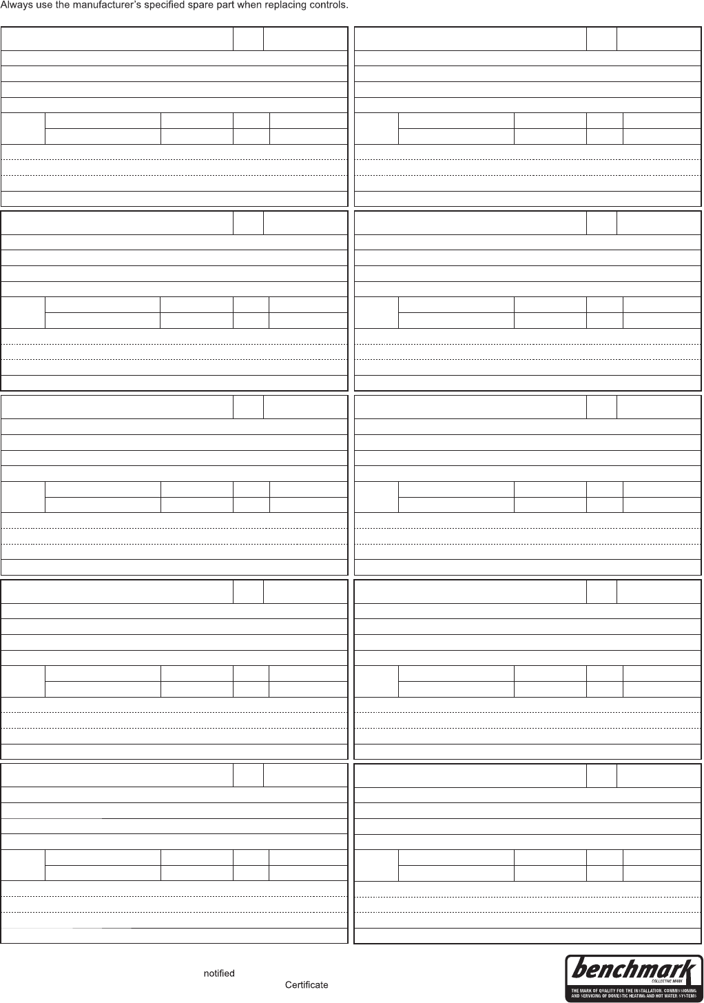 Failure to install and commission according to the manufacturer’s instructions and complete this Benchmark Commissioning Checklist will invalidate the
