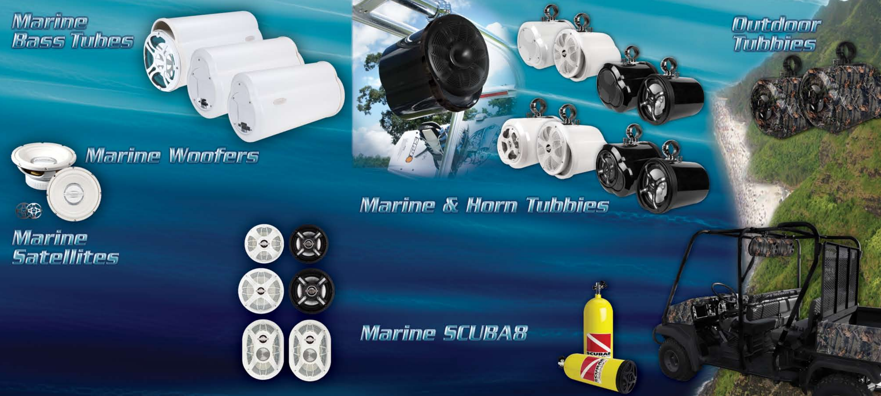 marine grade woofers are available in 8" and 10" sizes and are ready to “Rock the Boat” with