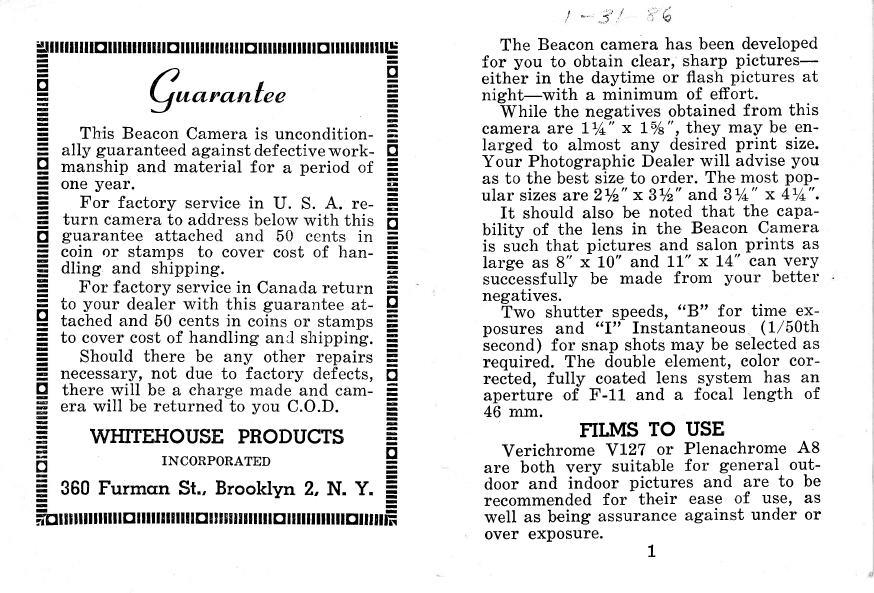 Beacon Ii Instruction Manual Www.orphancameras.com