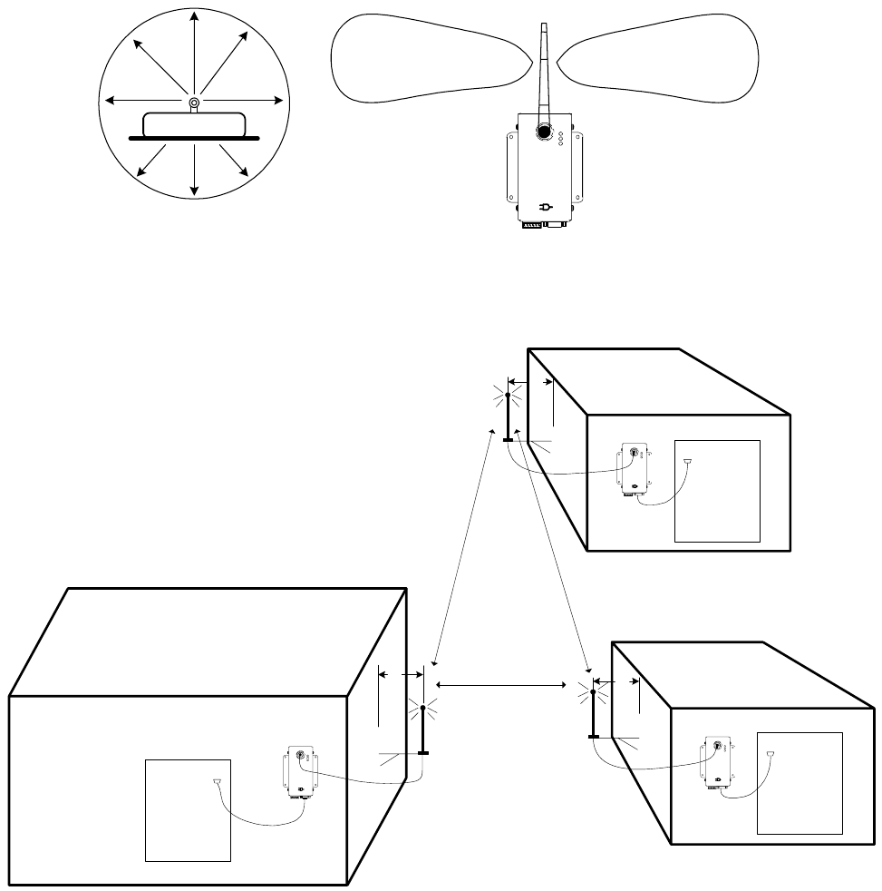 mounted inside a metal enclosure. Antennas must be oriented in the same plane and located in view of the