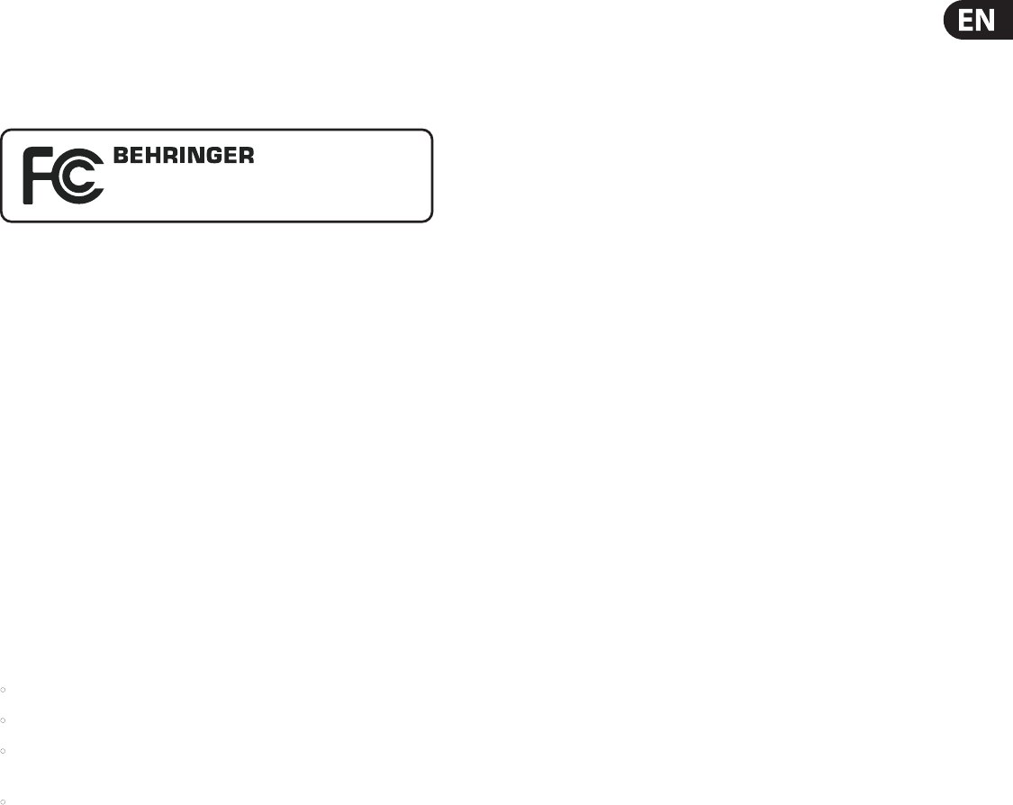 Changes or modications to the equipment not expressly approved by MUSIC Group