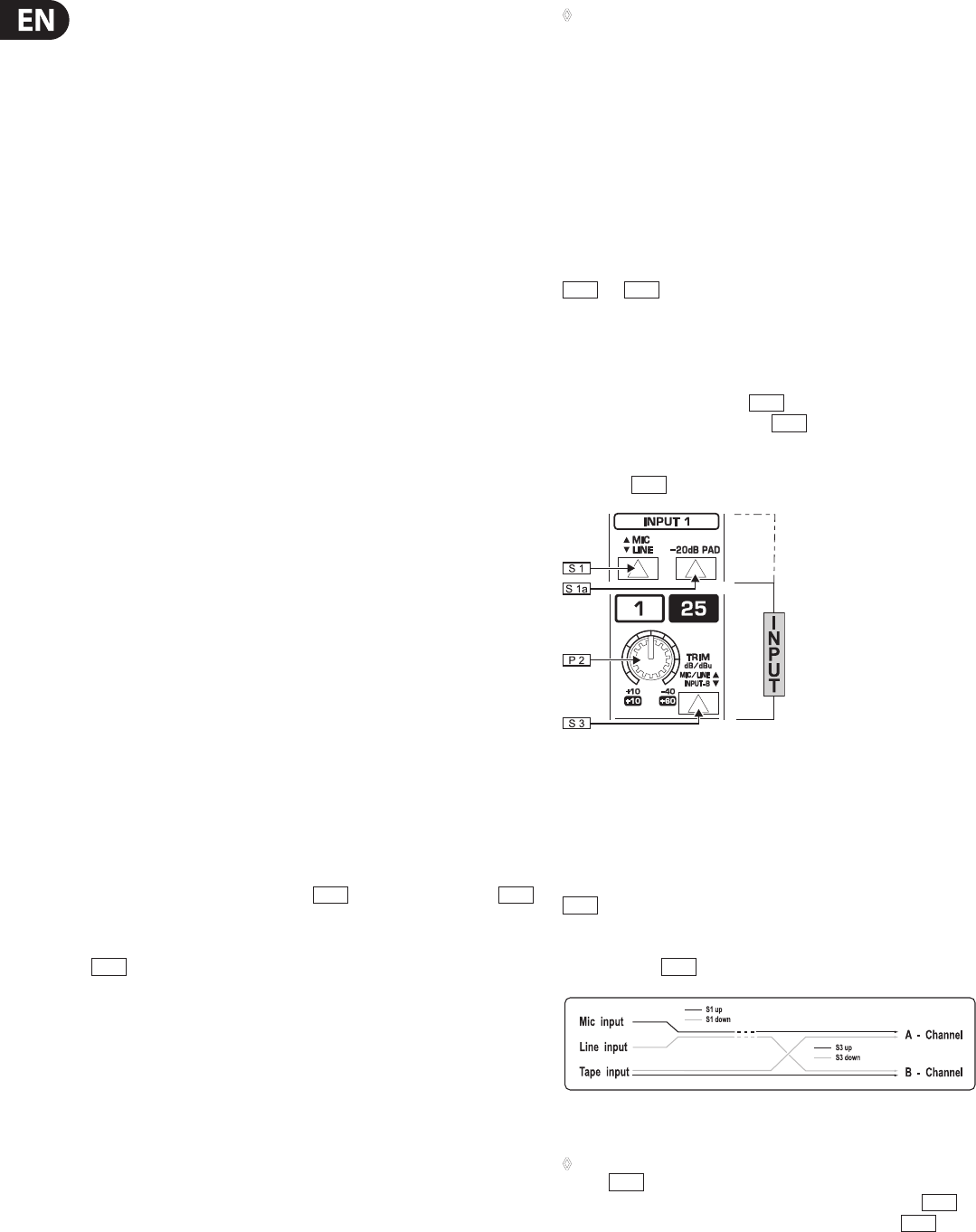 Lo cut (HPF) 75 Hz, 12 dB/oct.