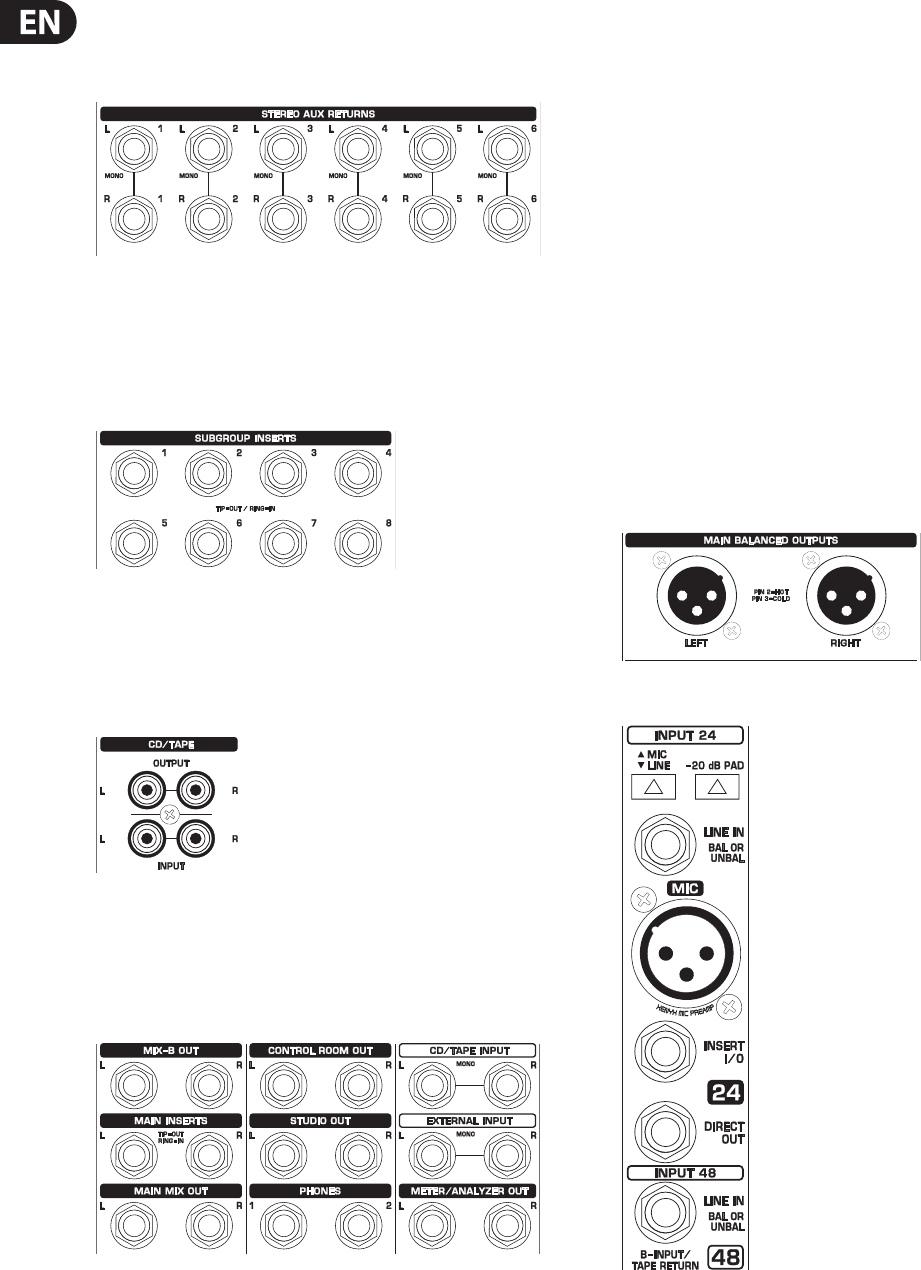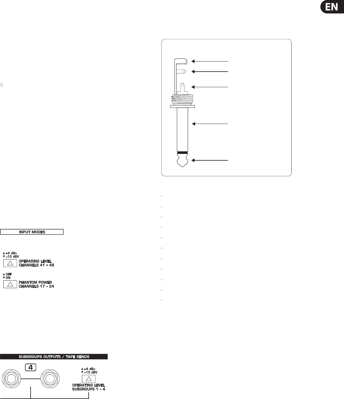 balanced / +22 dBu, ¼" jacks, unbalanced