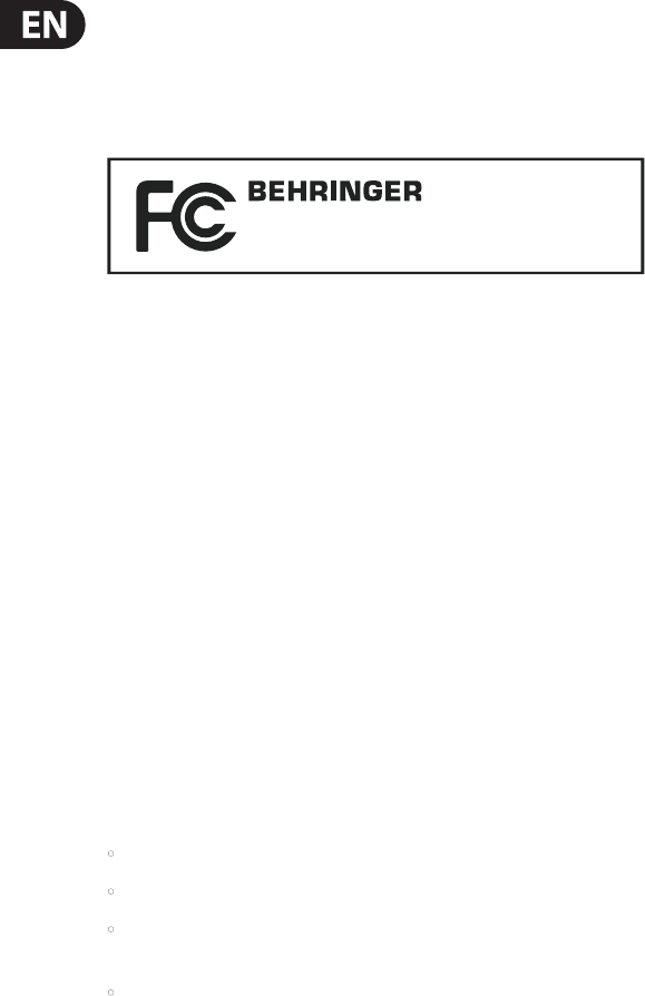 Changes or modications to the equipment not expressly approved by MUSIC Group