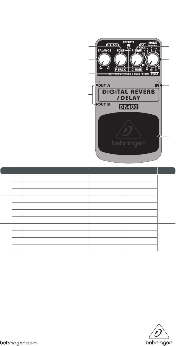DELAY DR400. This Reverb/Delay eects pedal delivers 24-bit high-resolution stereo reverb and