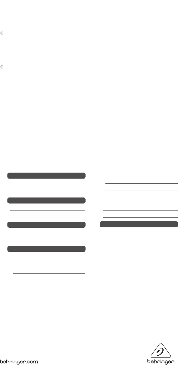 http://behringer.com and read the terms and conditions of our warranty carefully.
