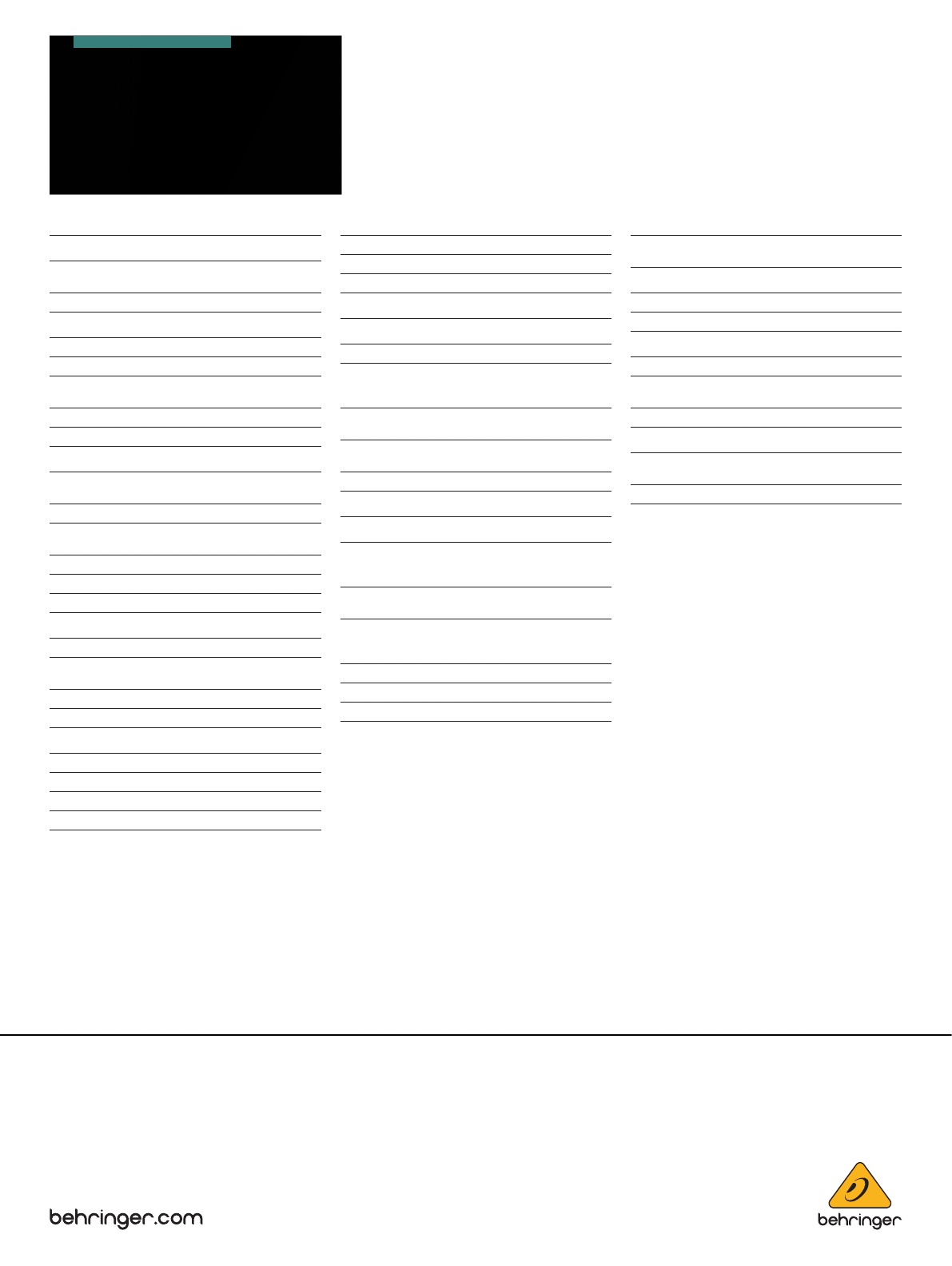 Technical specifications and appearances are subject to change without notice and accuracy is not guaranteed. BEHRINGER is part of the MUSIC Group (music-group.com). All trademarks are the property of their respective owners. MUSIC Group accepts no liability for any loss