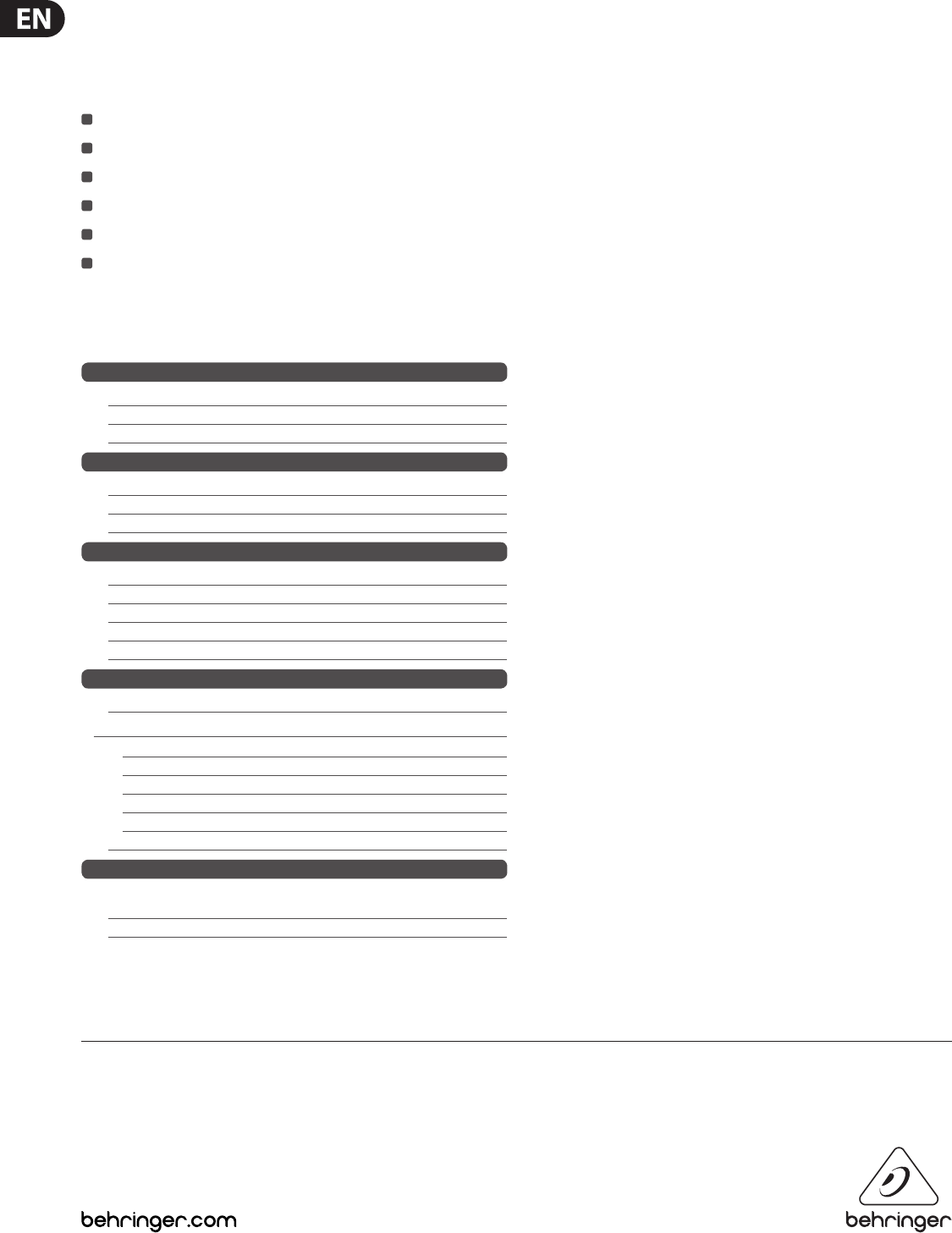 TECHNICAL SPECIFICATIONS AND APPEARANCES ARE SUBJECT TO CHANGE WITHOUT NOTICE AND ACCURACY IS NOT GUARANTEED. BEHRINGER, KLARK TEKNIK, MIDAS, BUGERA, AND TURBOSOUND ARE PART OF THE MUSIC GROUP (MUSIC-GROUP.COM).