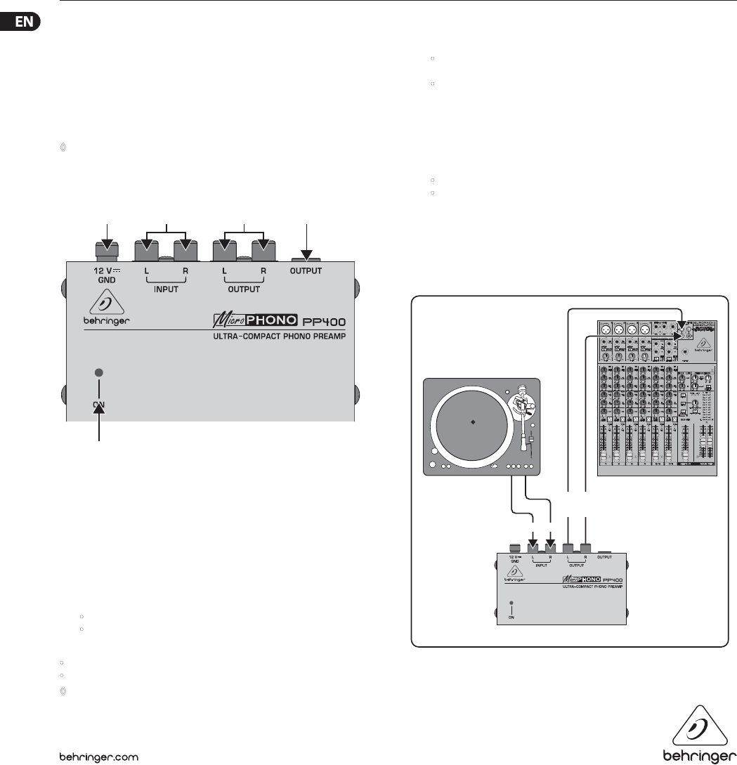 1. The PP400 equalizes a turntable signal according to RIAA specications.